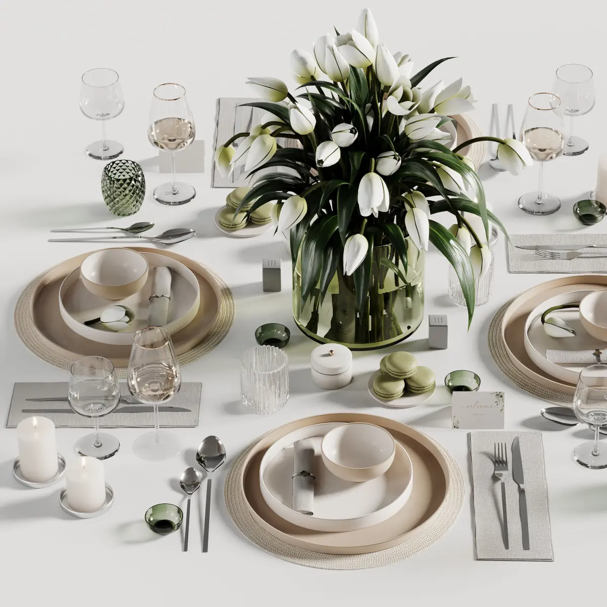 tableware set 19Units:Centimeterssoftwarem:3dsMax2016,Vray5 & Corona6Archive: vray 3ds max 2016 / corona 3ds max 2016 / corona .fbx / vray.fbx /obj/ texturesPleasant use and beautiful renderings