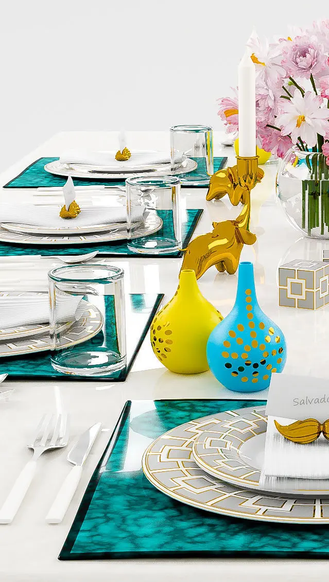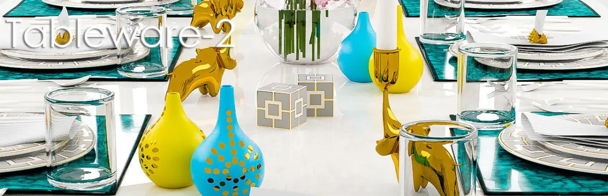 tableware 2 a complete table ware with dinning set. flower vase, candles and many decorative items too.. looks perfect for your dinning area.. designed in 3dsmax