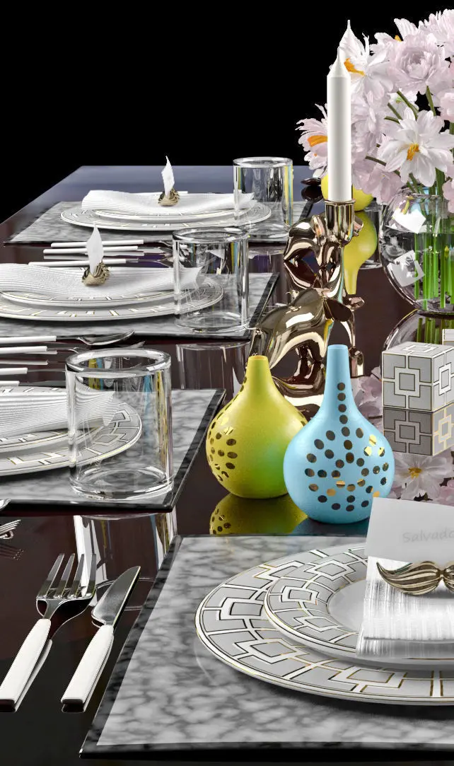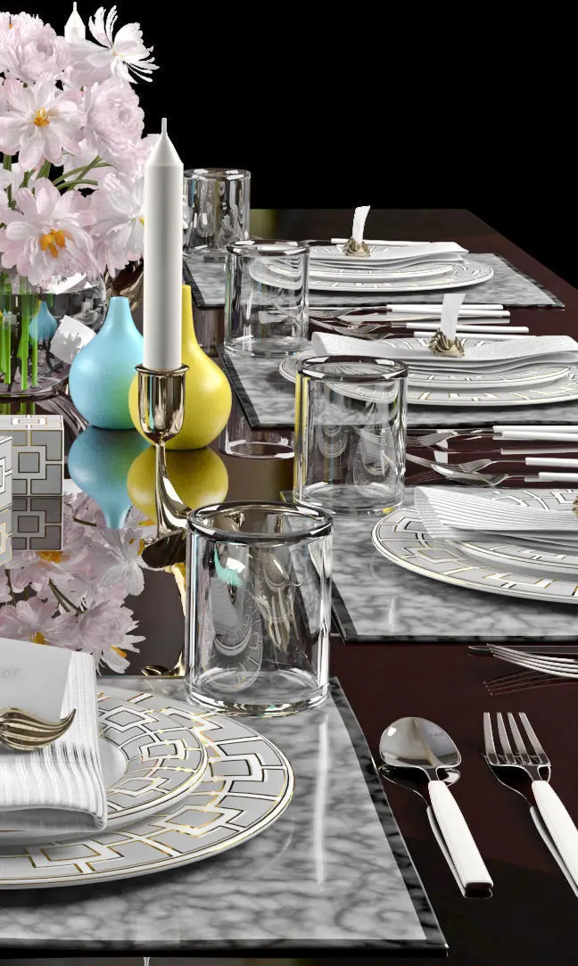 HomeCatalogTableware table setting with silverware and flowers 3D model