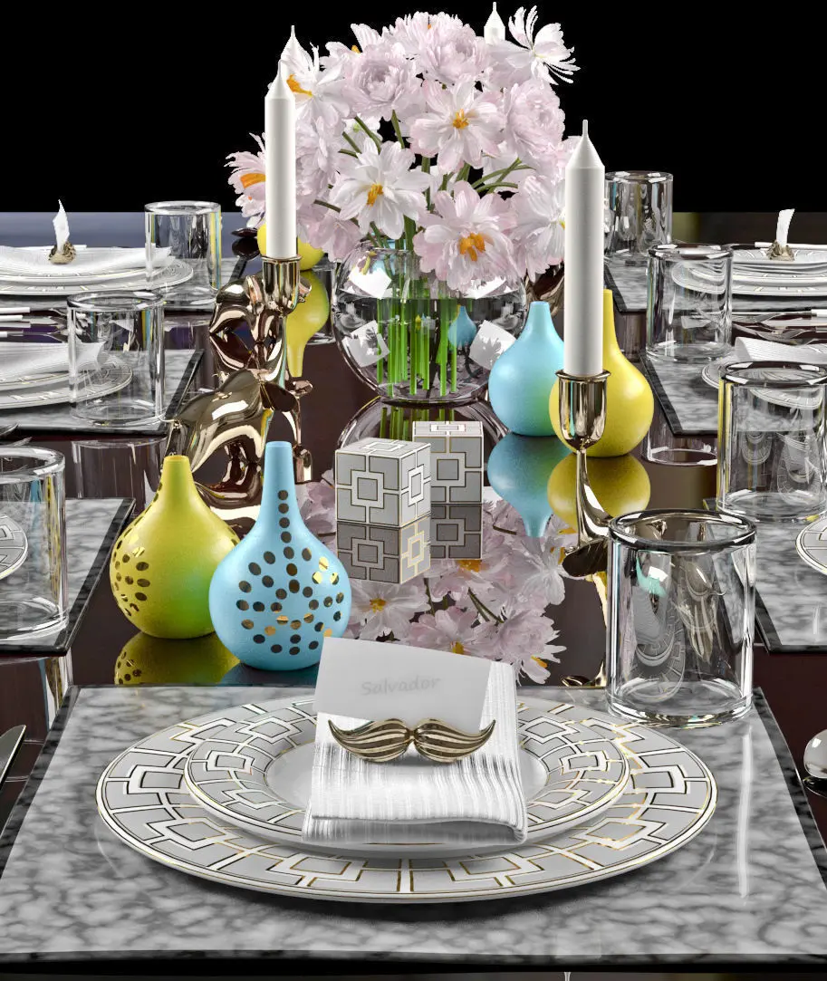 tableware 1 a complete table ware with dinning set. flower vase, candles and many decorative items too.. looks perfect for your dinning area.. designed in 3dsmax