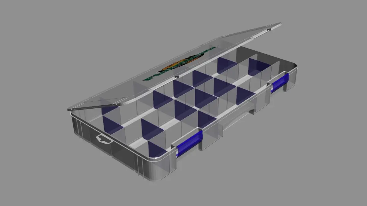 fishing tackle boat, hinges and opens. Can easily replace logo with any other with a alpha or opacity map.