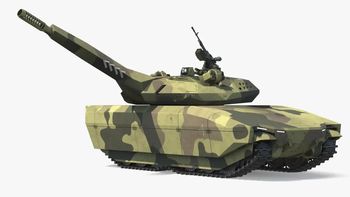Tactical Armored Fighting Tank Camouflage Green Rigged is a three-dimensional model of a modern tracked combat vehicle, designed for frontline operations with advanced turret systems and realistic rigging for animation.