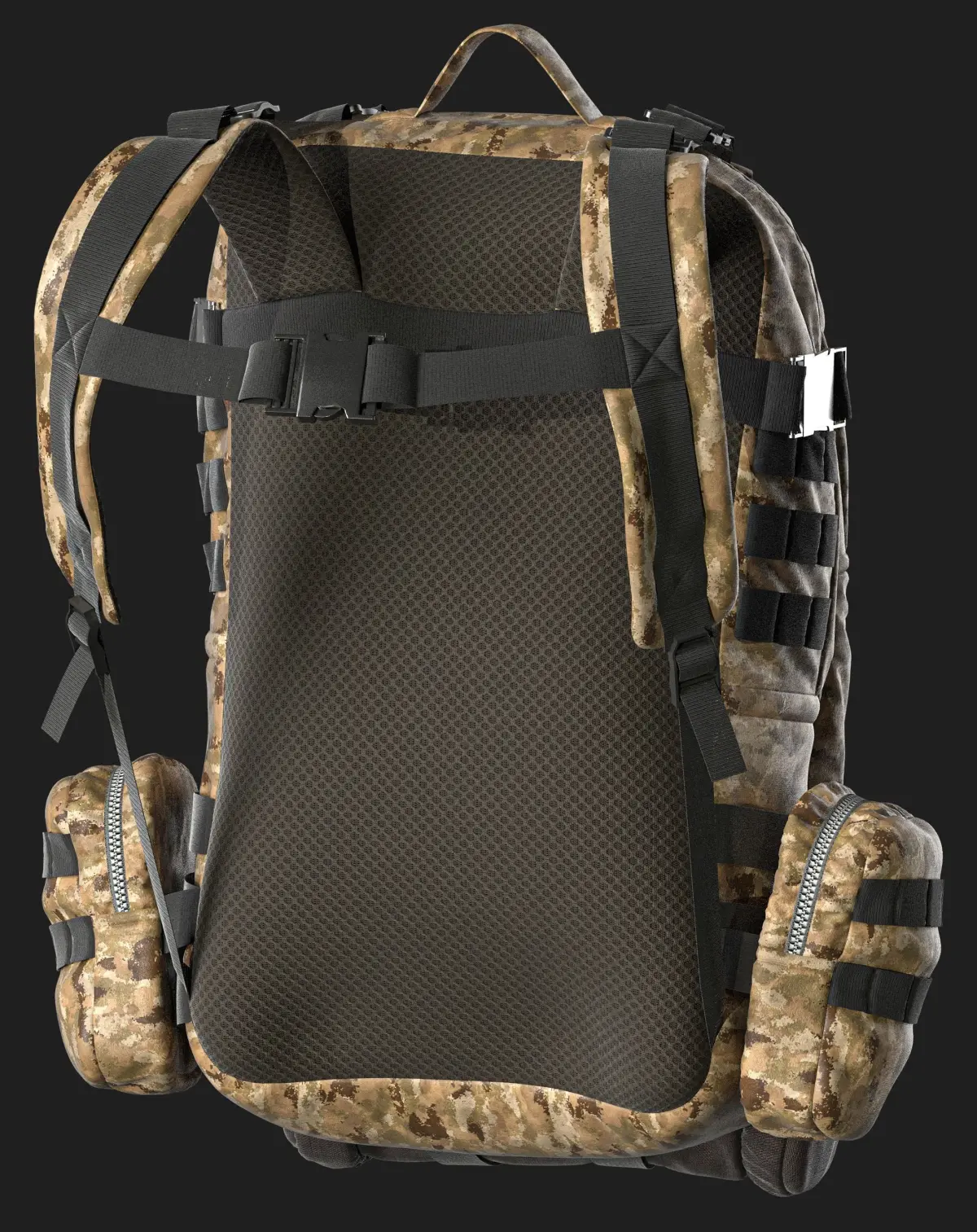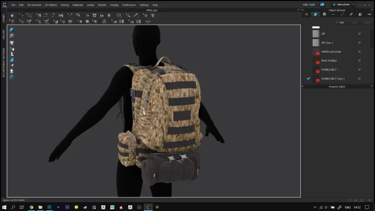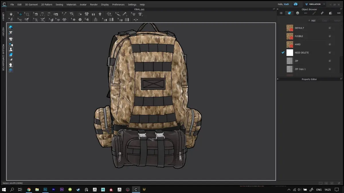 Tactical Backpack 2 High Poly Model Clo3D, Marvelous Designer project OBJ FBX Materials triangular geometry no retopology