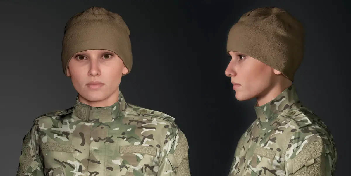 Authentic and high-quality military winter hat with 4 PBR color variants (Camouflage, Coyote Brown, Olive, and Black), designed for realism and versatility. Geometry is optimized for games, sitting at 1366 verts. 2 fit versions for average MetaHuman male and female. The model includes 4K resolution textures for detailed material fidelity. Perfect for military, FPS, or narrative-driven projects.