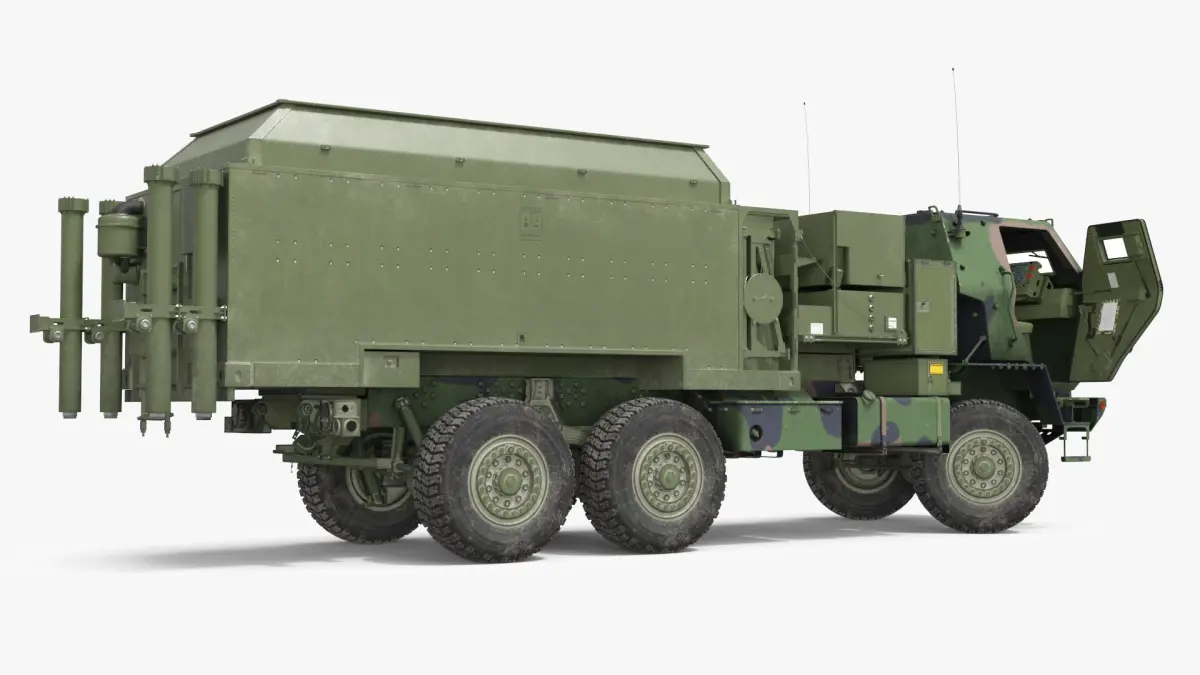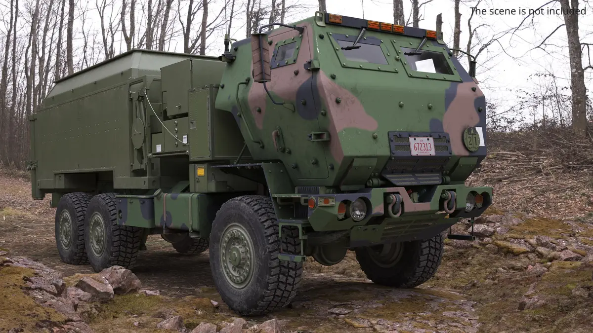 Tactical Communications Command Vehicle Camo Rigged is a 3d model of a highly mobile artillery rocket system vehicle commonly used by the military for rapid and strategic deployment.