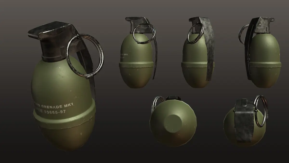 ◉ M26 Grenade◉ M67 Grenade◉ M84 Grenade◉ MK1 Grenade◉ MK2 Grenade◉ M18 Grenade-Yellow◉ M18 Grenade-Violet◉ M18 Grenade-Red◉ M18 Grenade-Green