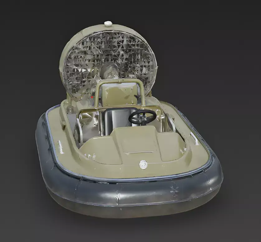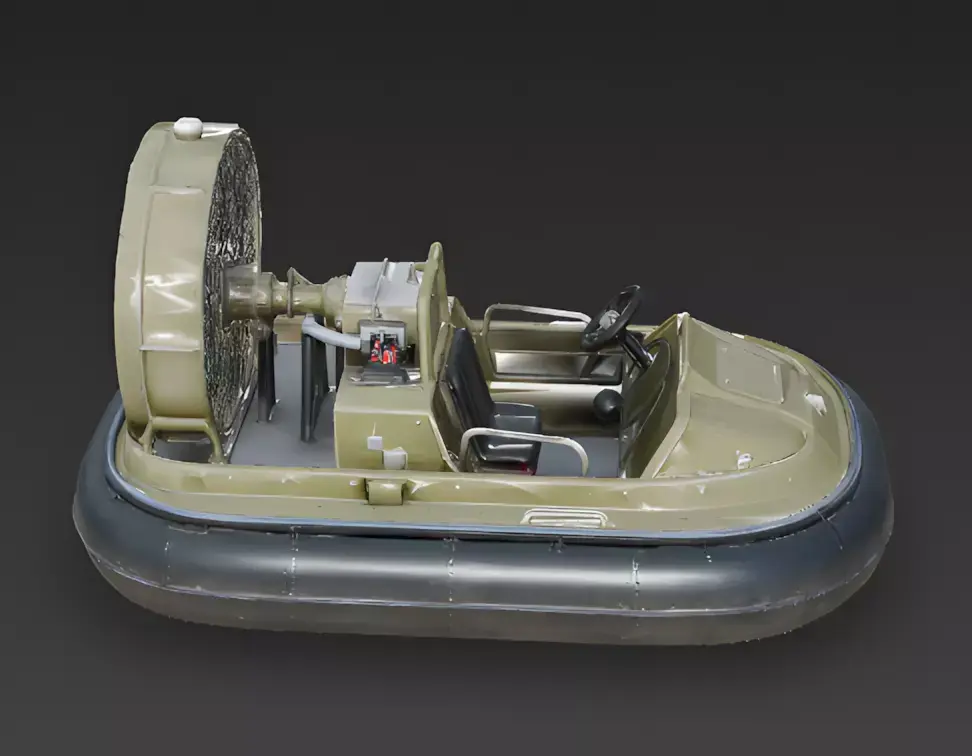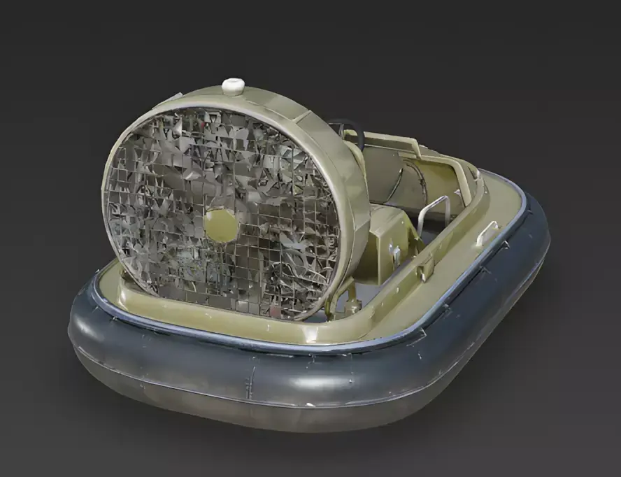 Asset BreakdownThis 3D model represents a light military hovercraft designed for rapid transport across varied terrain, from swamps to open water. It features a utilitarian, rugged design that emphasizes functionality and field durability.