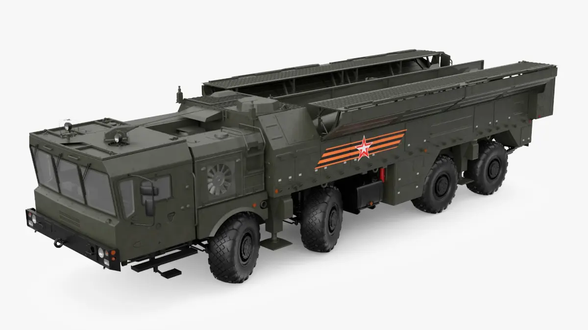Tactical Missile System Iskander SS-26 Stone Rigged for Cinema 4D is a 3d model of the Iskander SS-26, a short-range ballistic missile system used for precision strikes on tactical targets in modern warfare.