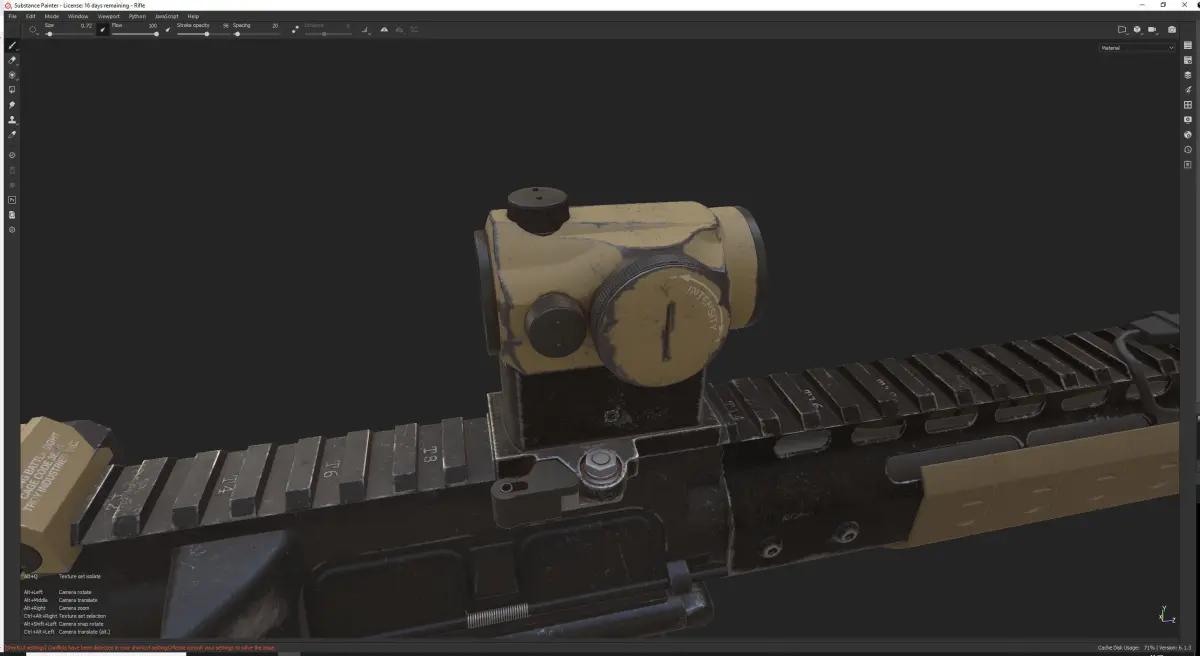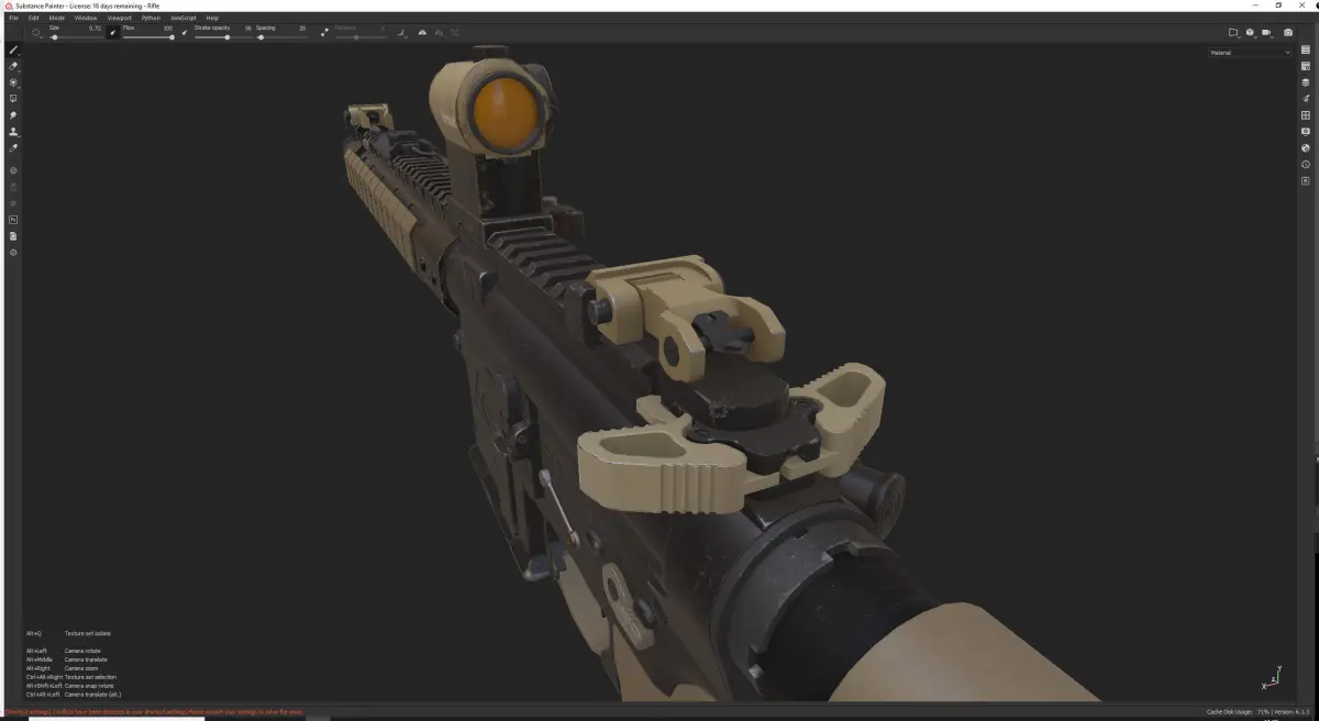 The rifle was textured in Substance Painter and the Substance file is included in this package. I have also included the textures as you see them in the preview images. All textures are 4K resolution but can be scaled down for faster renders if close-ups are not required.