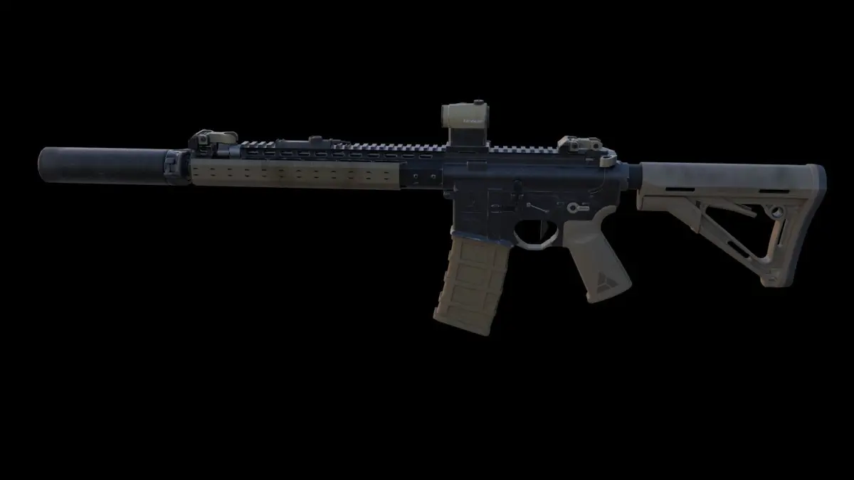 This is a high-resolution model of a tactical fighting rifle for use in visual effects or animation.