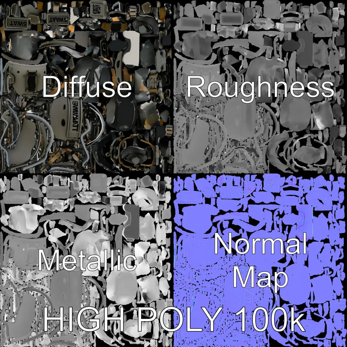 This Tactical SWAT Helmet 3D model pack offers three levels of detail: low-poly for mobile applications, middle-poly for environmental settings, and high-poly for rendering productions. Ideal for realistic tactical simulations, gaming environments, or virtual reality applications, this helmet model is versatile and detailed. It features PBR textures with Diffuse, NormalMap, and Reflection/Roughness/Metallic maps, all with 4096*4096 pixel detail, providing high realism for any modern rendering engine. All models are accurately unwrapped with no overlapping UVs. The first image is the reference used for creating the 3D model. It is important to carefully evaluate the quality of the model by examining the preview images that display the topology and polygonal mesh. These previews (WIRE and WEB 3D Preview) clearly demonstrate how accurately the model matches the original reference and how well the geometry has been executed. Please like and leave a comment if you enjoy this model pack.
