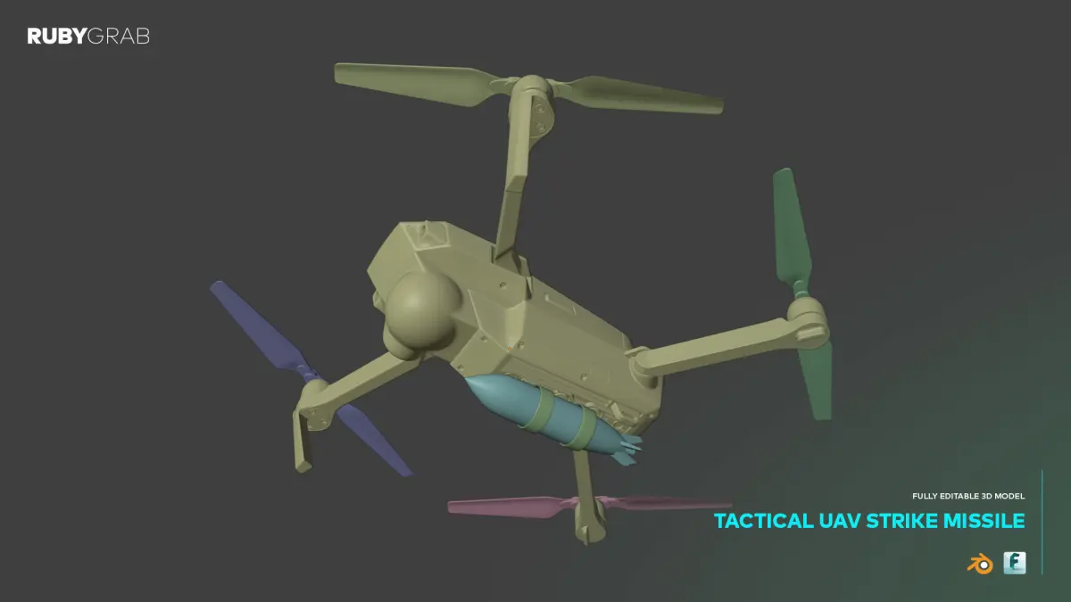 This is a highly detailed 3D model of a tactical UAV equipped with an integrated missile system, ideal for use in military and technology-focused projects. The package includes both .blend and .fbx files, ensuring compatibility with various 3D software and workflows. The model is fully editable, allowing for easy customization to fit your specific needs. Perfect for professionals in visualization, animation, and simulation.