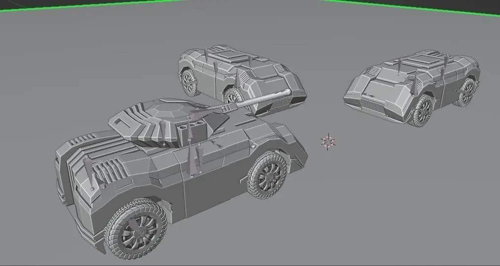 There are three vehicle inside the file. One with Turret, another one as an ambulance, and the last one is the plain/IFV one. This 4x4 tactical vehicle try to bring futuristic vibes with those layout. it can load 6 infantries. All done in Blender and available in 6 extensions.