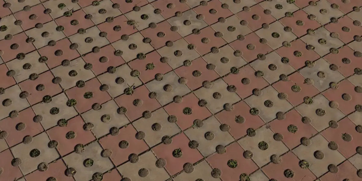 This Tactile Paving Dots PBR set recreates accessibility warning tiles with raised domes on square pavers, alternating warm red and sand tones and subtle wear on the domes from foot traffic. Fine chamfers, sand‑filled joints, and occasional moss tufts add realism in close‑ups while the grid pattern tiles cleanly across long sidewalks and transit platforms. Delivered as seamless 4K maps—BaseColor, Normal (OpenGL), Roughness, Height/Displacement, and Ambient Occlusion—calibrated for PBR in Blender, Unreal, Unity, 3ds Max, and Maya. Real‑world scale and clean tiling support large installs; use Parallax or Displacement to emphasize dome relief and grout recess, or keep Height light for performance. Roughness is tuned for a matte concrete/polymer finish; lowering it simulates newly cleaned tiles with slight sheen. Optimized PNG/TIFF textures preserve crisp dot edges and micro‑wear with efficient memory, and preview renders are included for rapid look‑dev.