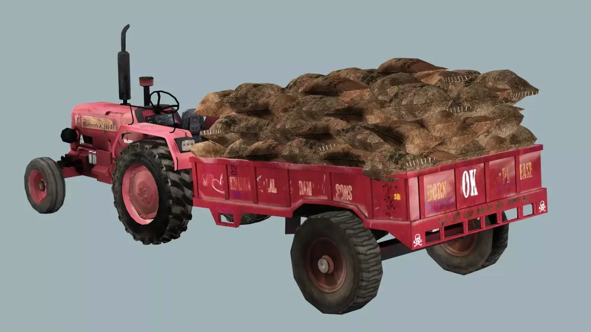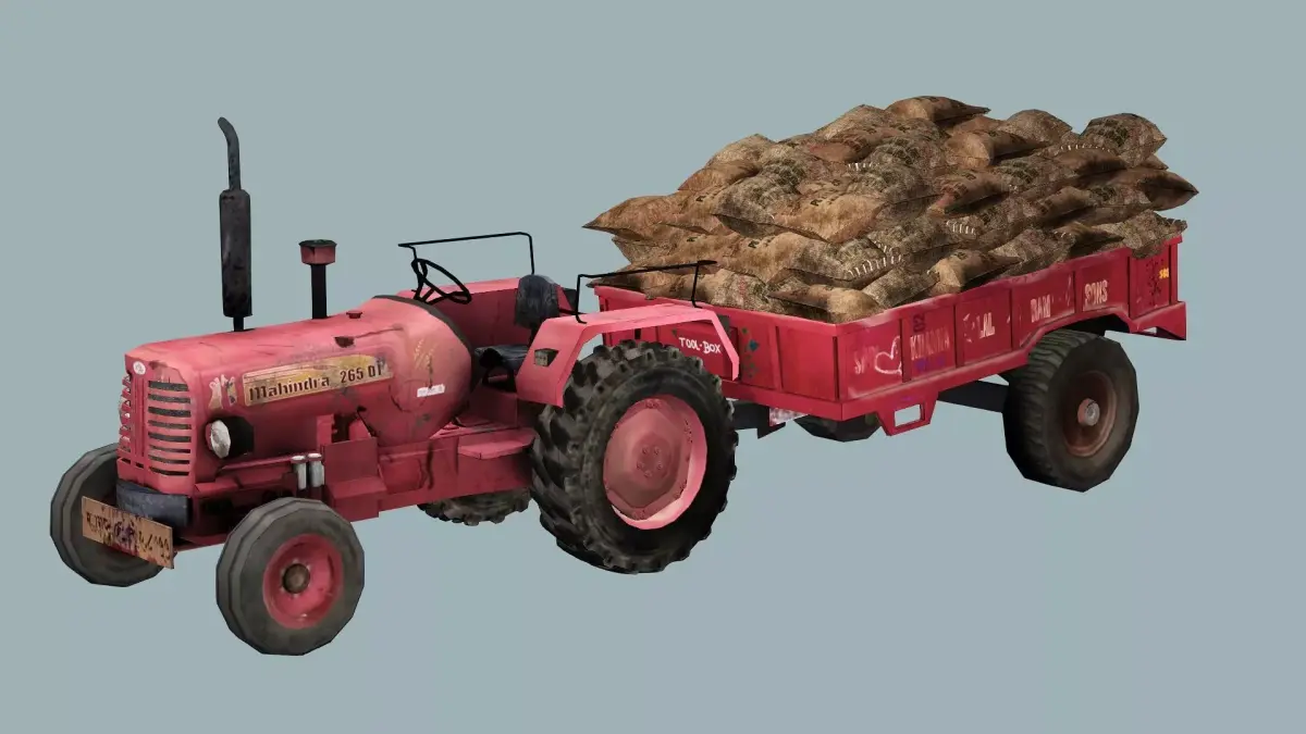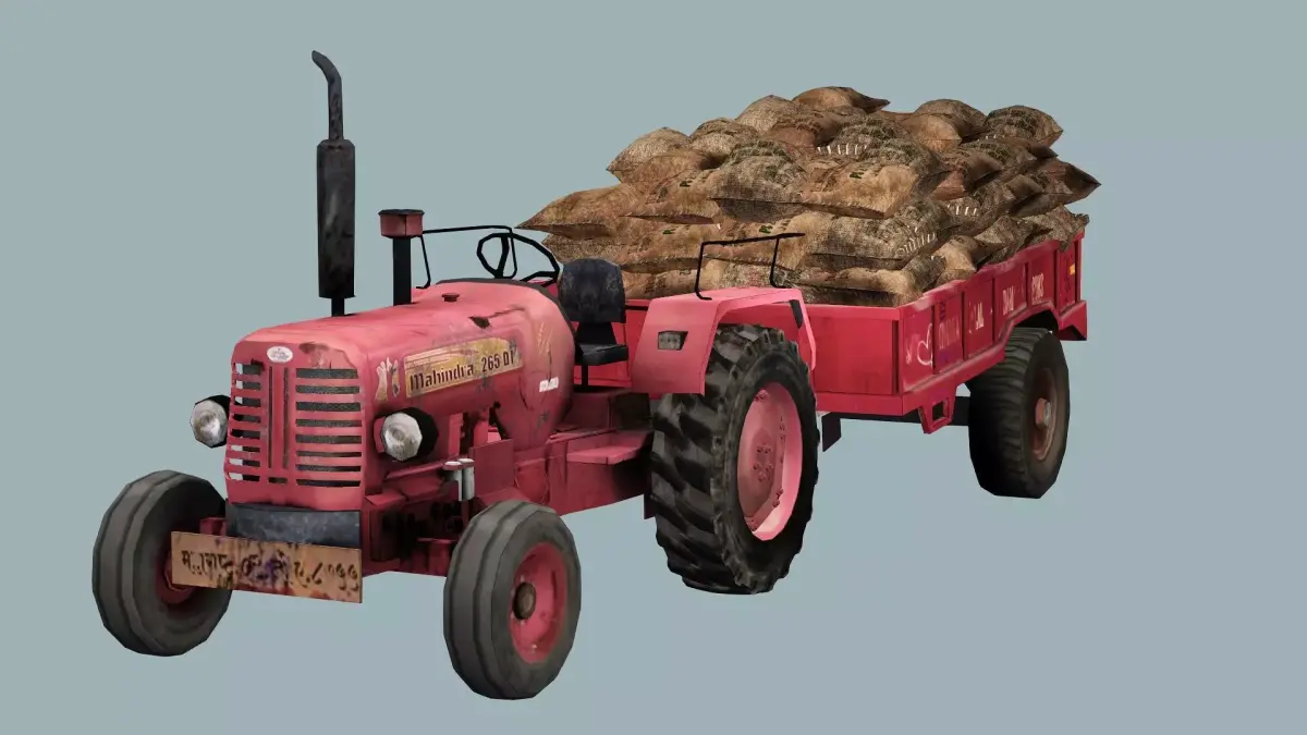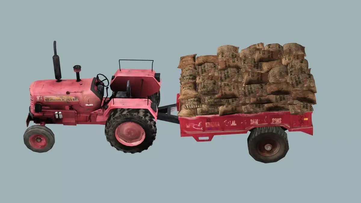 Product Name : Tafe Tractor X2 With Trailer 3D Model