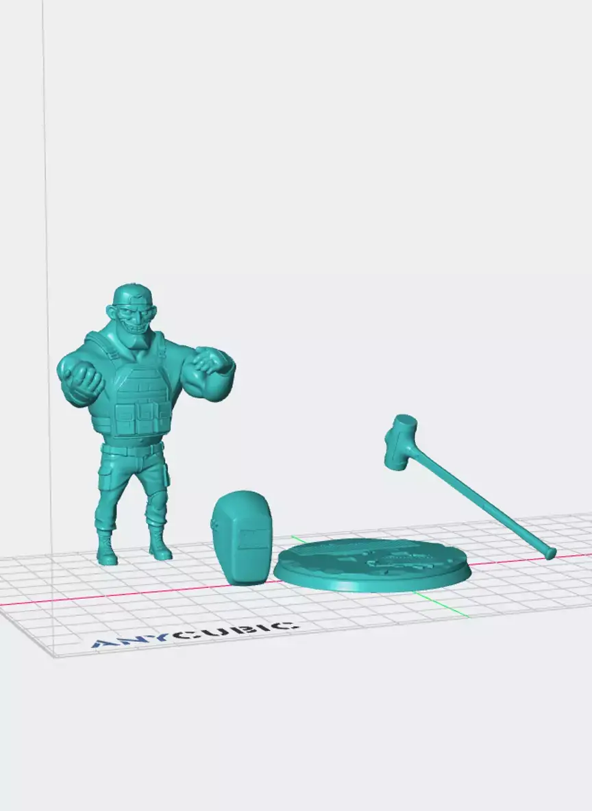 Modular Design: Includes separate parts (Main Body/Figure, Welding Mask, Sledgehammer, Base) for easier resin printing, support placement, and painting.