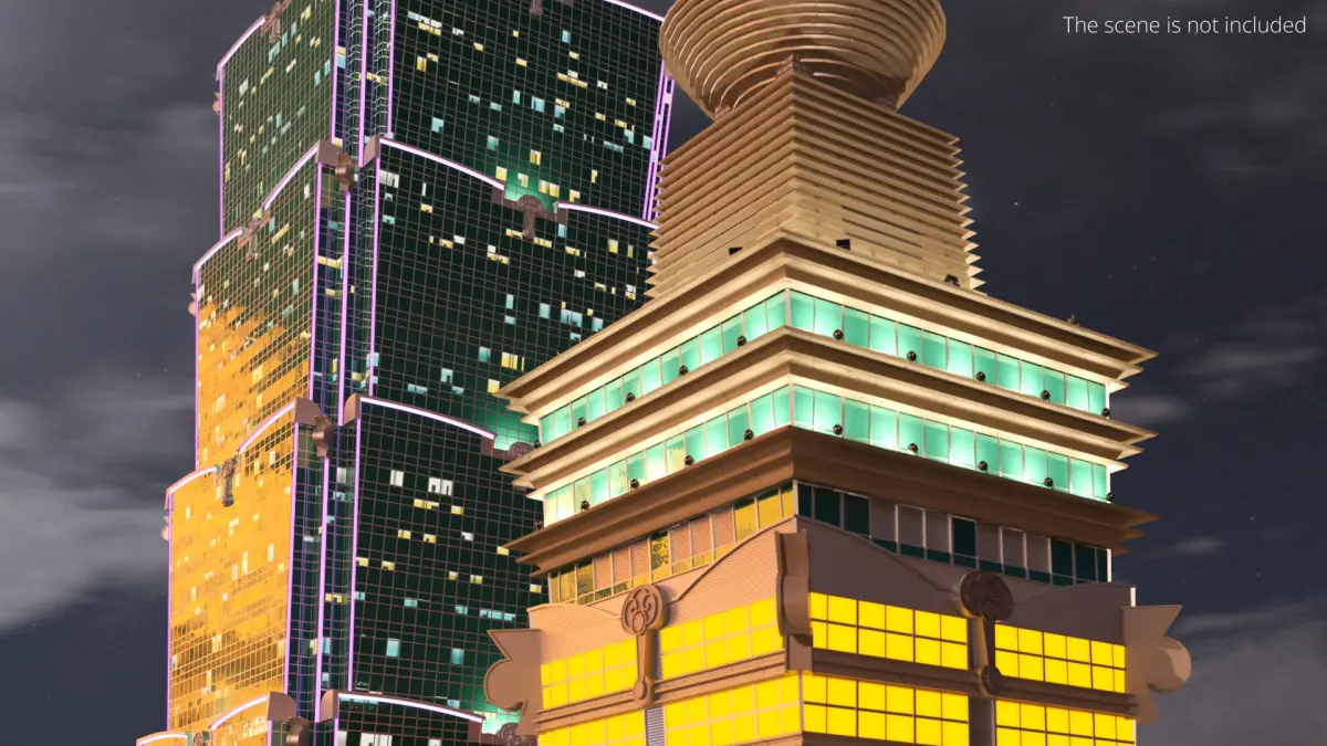 Taipei 101 Skyscraper Tower is a three-dimensional model of the landmark high-rise building located in Taipei, Taiwan, renowned for its cultural symbolism and architectural innovation.