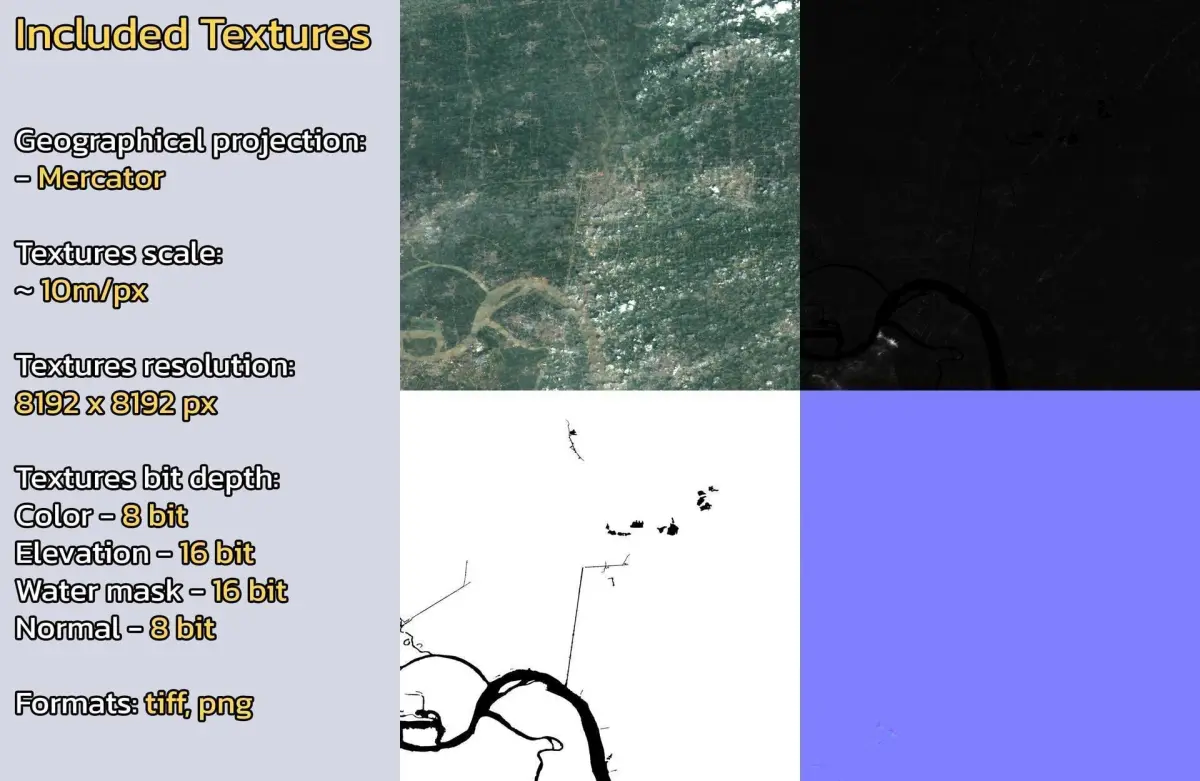 - Textures resolution: ~10m/px