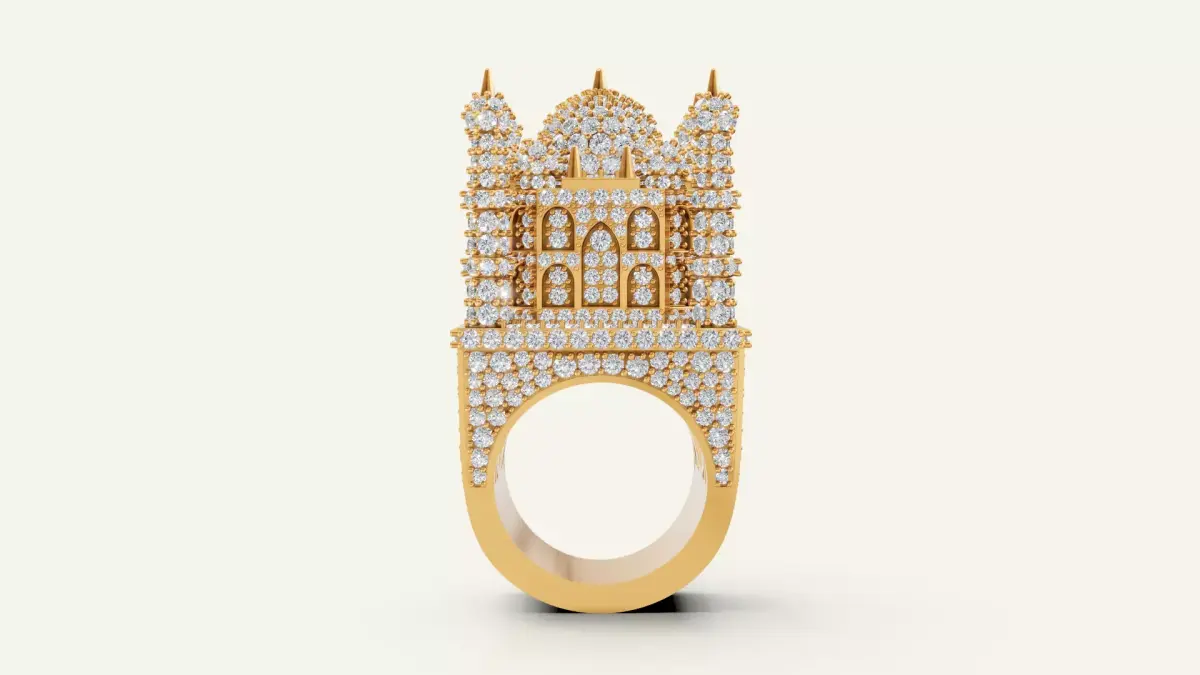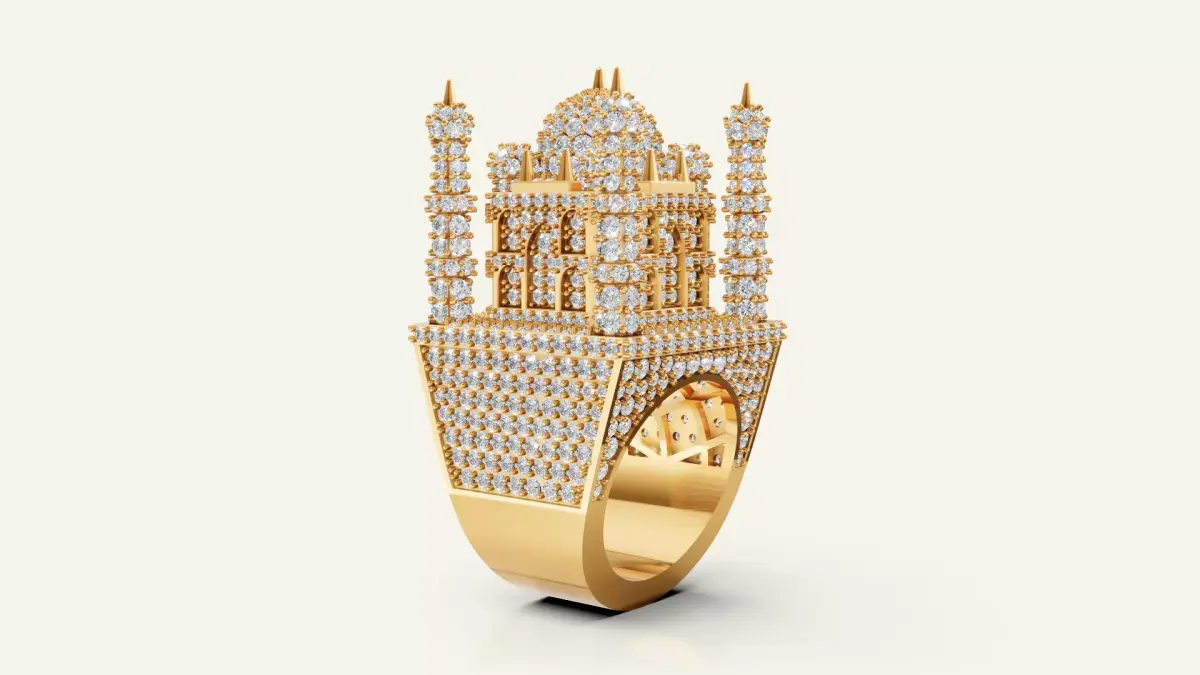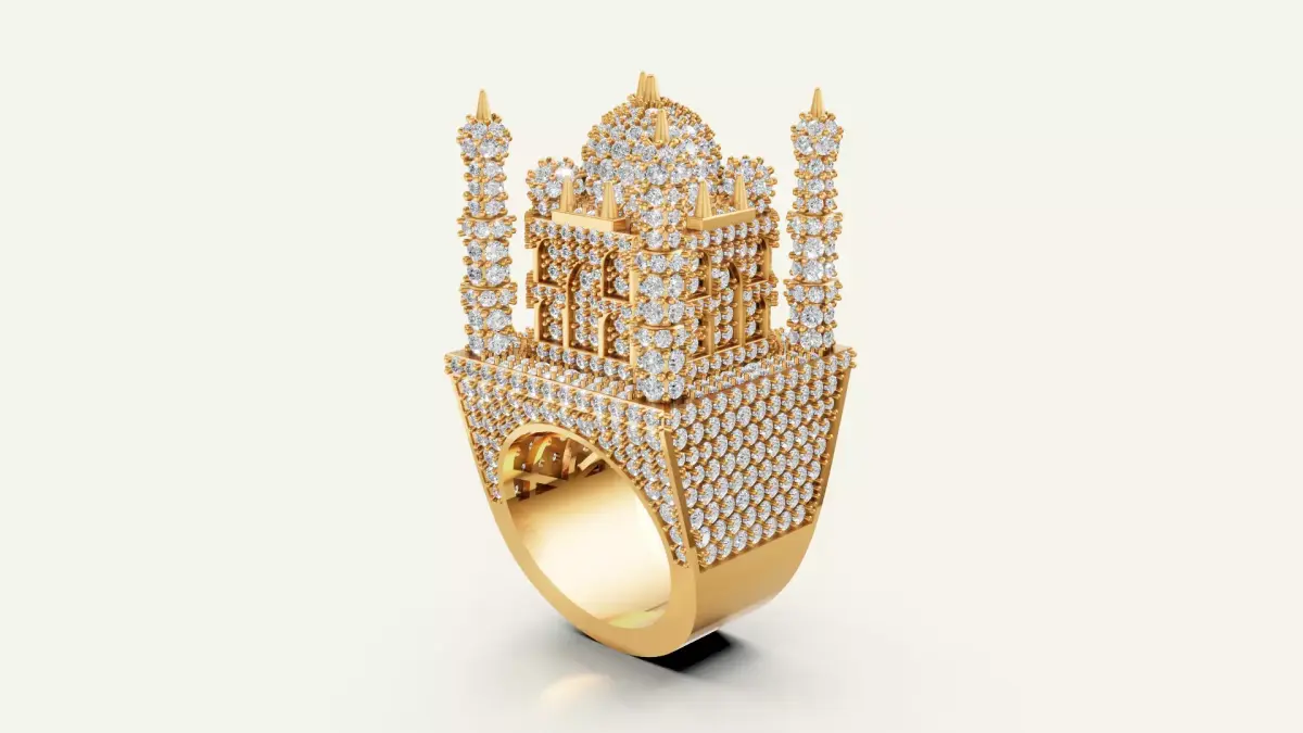 This model is a luxury heritage-themed diamond ring inspired by the architecture of the Taj Mahal. Ideal for jewelry manufacturers and designers creating exclusive men’s collections.