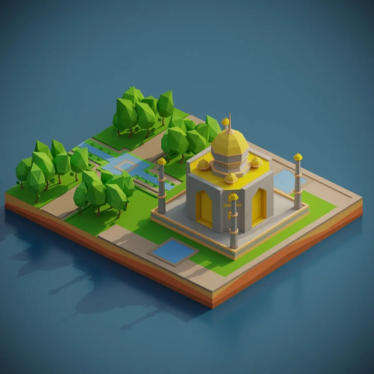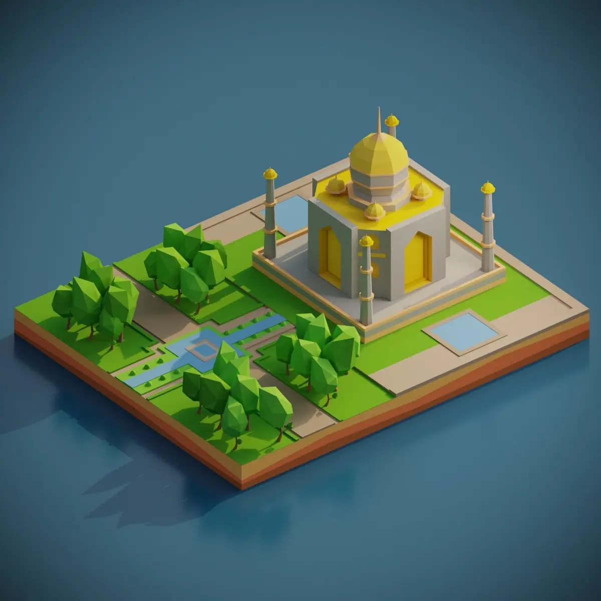 Capture the beauty of the Taj Mahal in your project with this low-poly 3D model.perfect for cultural or scenic environments.