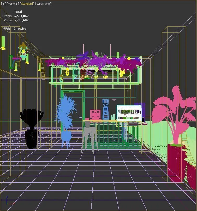 The render image of a bar is a modern and industrial space that incorporates the 2023 Pantone color. The bar features iron and inox design elements, glass shelving, and a mix of high tables and comfortable seating. The lighting fixtures and raw concrete flooring add to the industrial aesthetic. Overall, the space is sophisticated, edgy, and sure to be popular with a diverse crowd.
