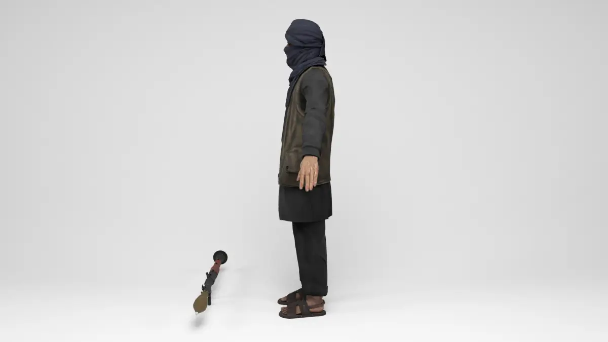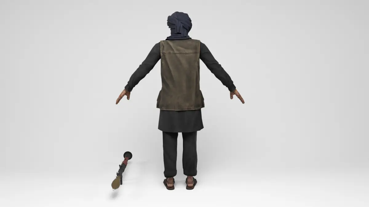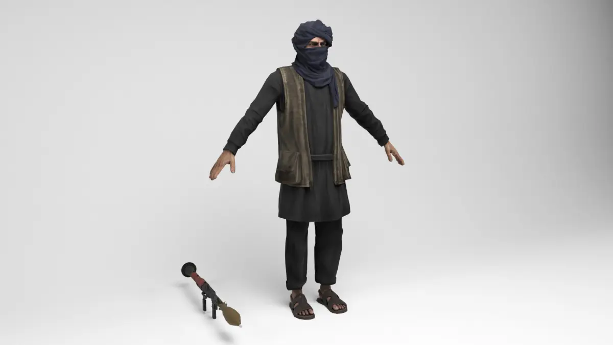 3D model of taliban mercenary . Weapon included. The model includes bones and several animations. Model ideal to be used in games, advertising and video production. Low-poly models to be used easily in any project.