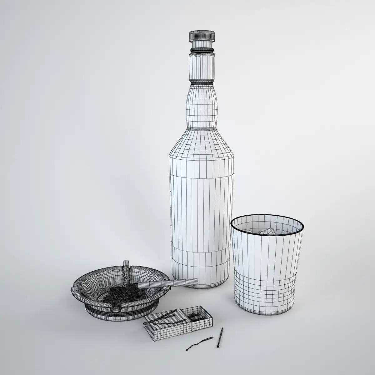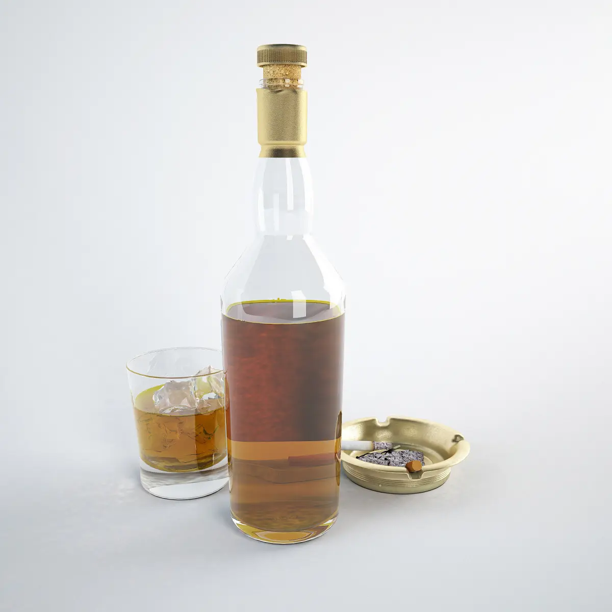 - ashtray with cigarettes,