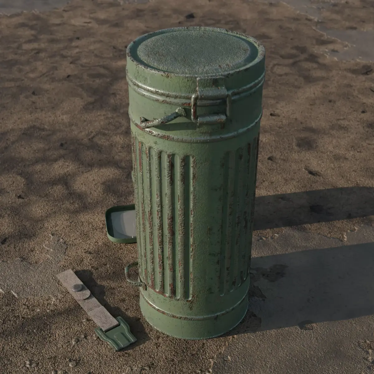 This is a detailed Tall M83 Gasmask Canister created with clean quad-based topology and Subdivision Surface (Sub-D) support, making it perfect for realistic renders and high-quality visualizations.