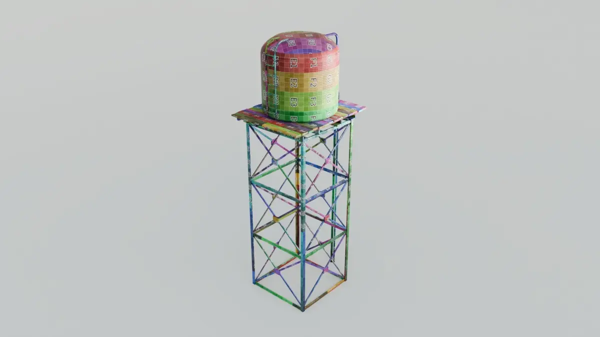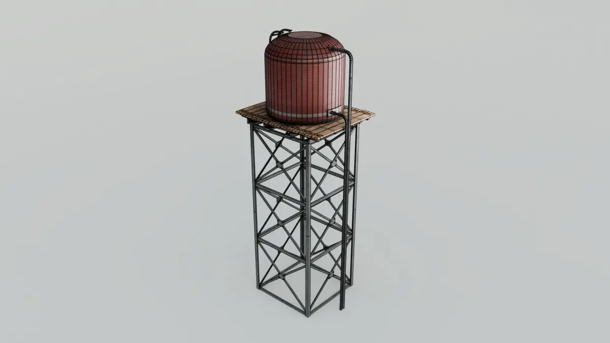 Enhance your 3D scenes with this detailed tall water tower model. It features quad topology, UV unwrapping, and a realistic design with 3,800 vertices, making it a great lowpoly addition. The model includes 4K PBR materials with albedo, metallic, roughness, normal, and height textures for high-quality visuals. Vertex colors provide extra control for retexturing, adding to the model's versatility. Suitable for urban, rural, or industrial environments, this water tower will add authenticity and depth to your projects.