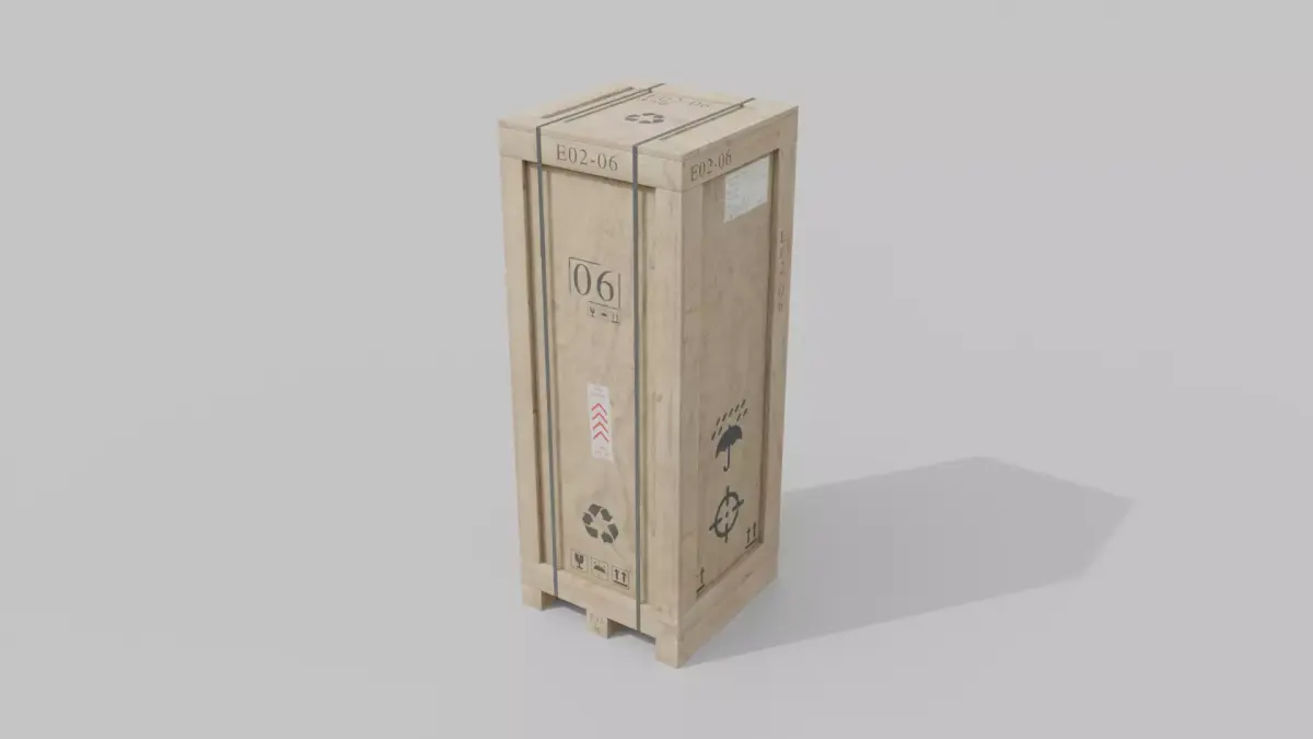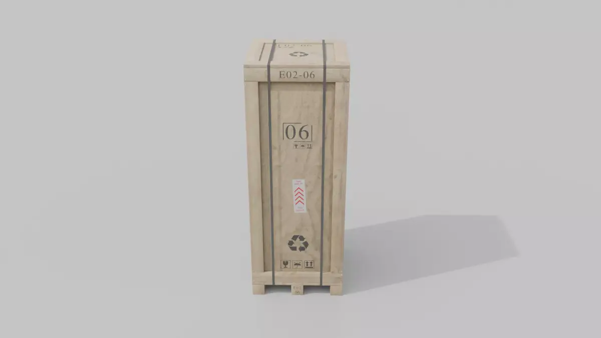 A high-quality 3D asset featuring a photorealistic, customizable Tall Wooden Crate, complete with realistic surface details and optional decals. Ideal for warehouses, shipping scenes, industrial visualization, game environments, and architectural projects.