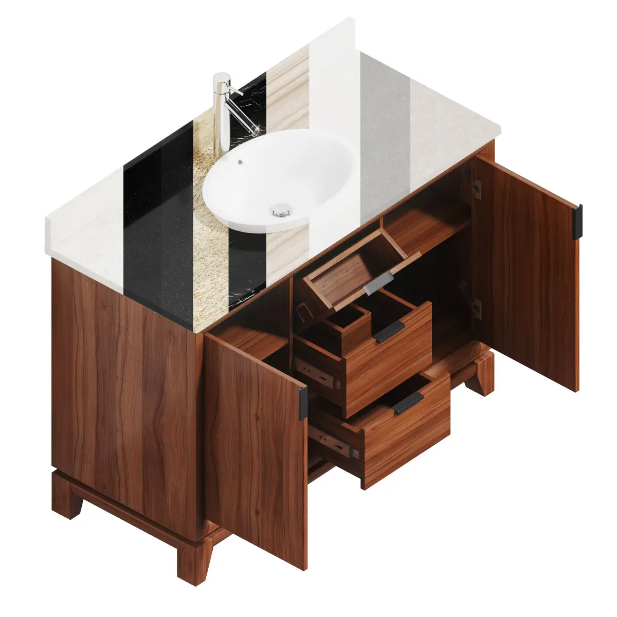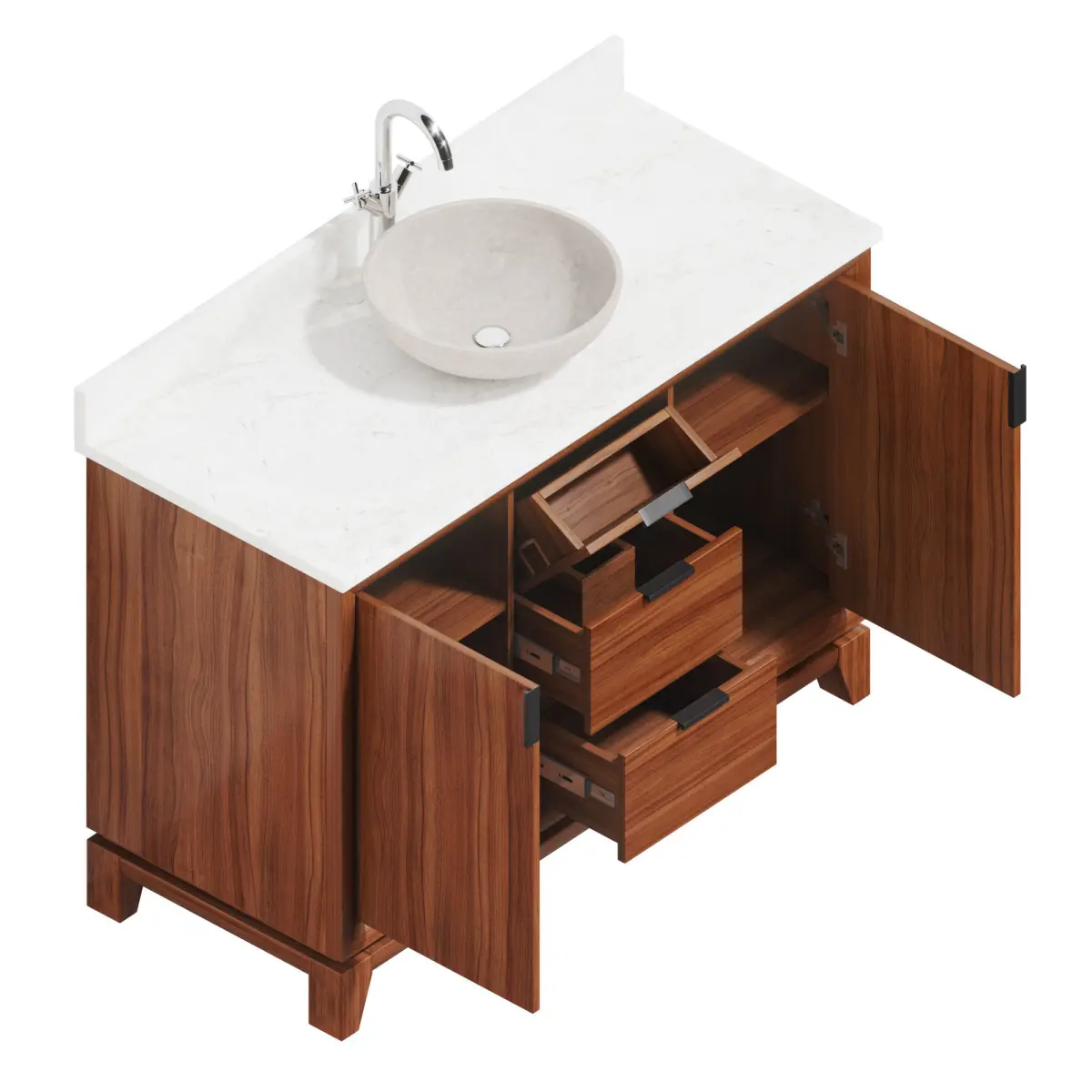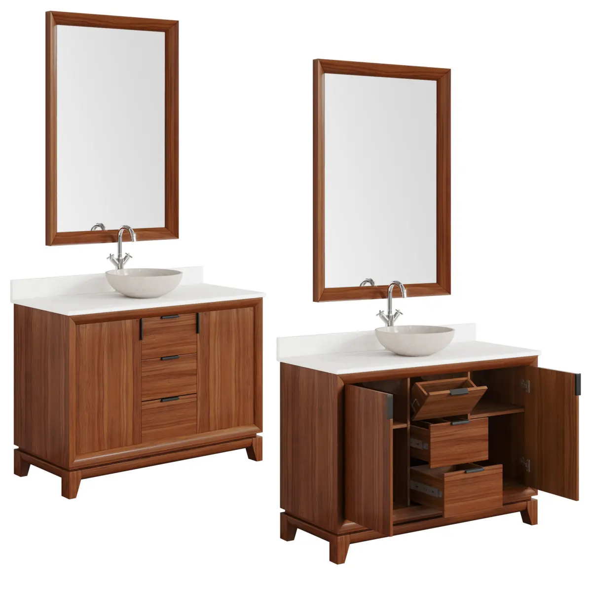 Talyn 48 Mahogany Vanity Countertop SinkCabinet: 120Overall Dimensions (WxHxD): 1219x863x508 mmMaterial: Light WalnutThis model features doors and storage cabinets that open.