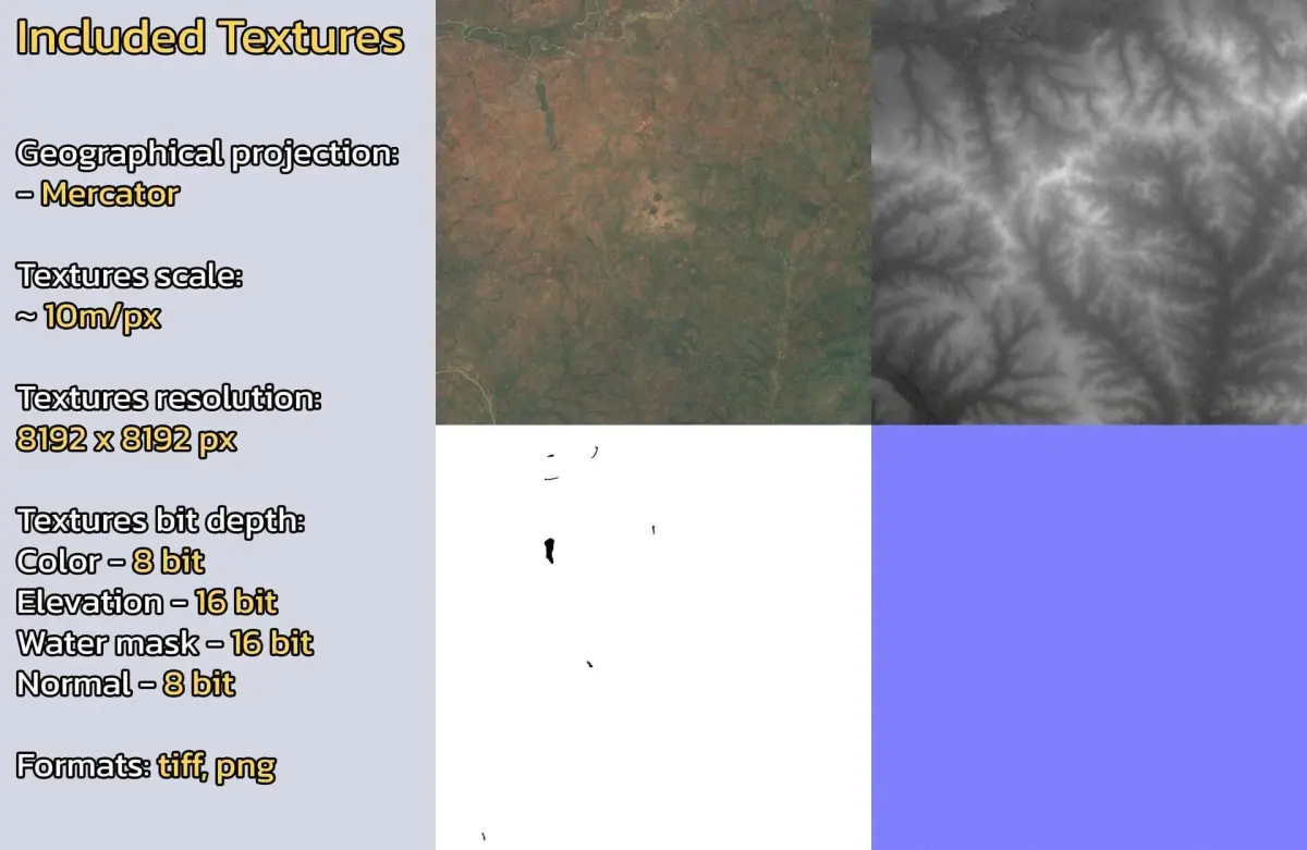 - Textures resolution: ~10m/px