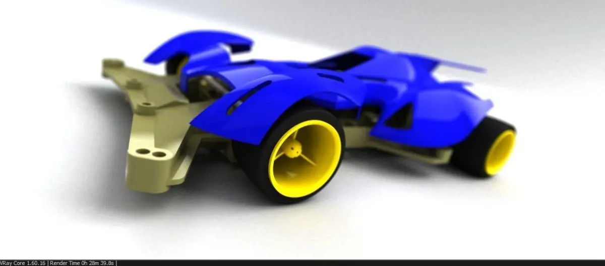 Model of a tamiya mini 4wd, popular toy of the 90's.The model is complete of all features of the toy, chassis, batteries, motors, gears, everything.enjoy!