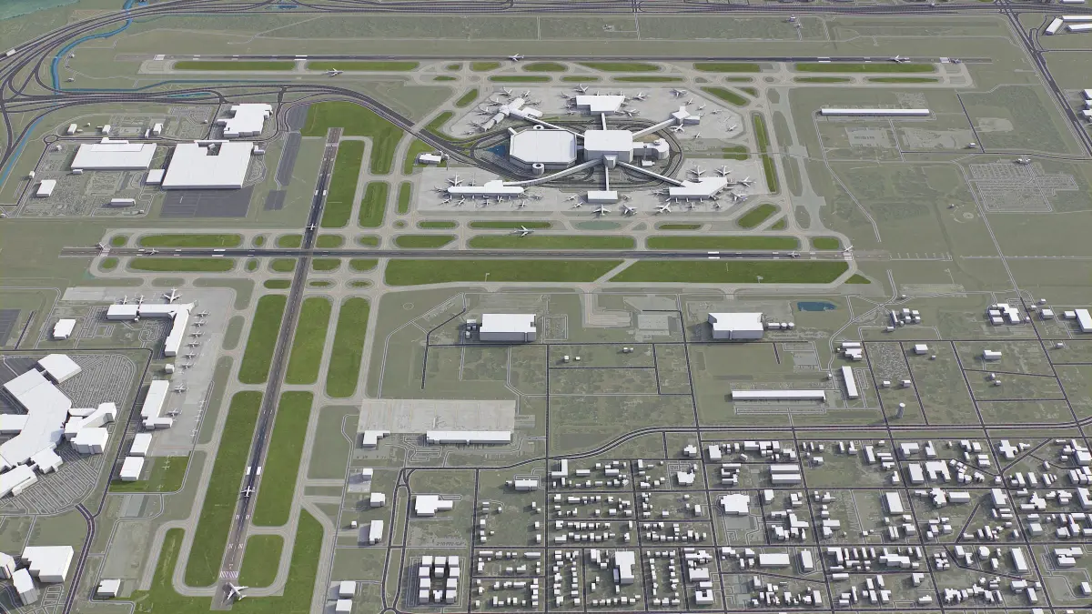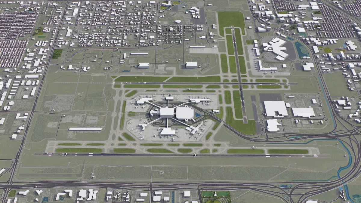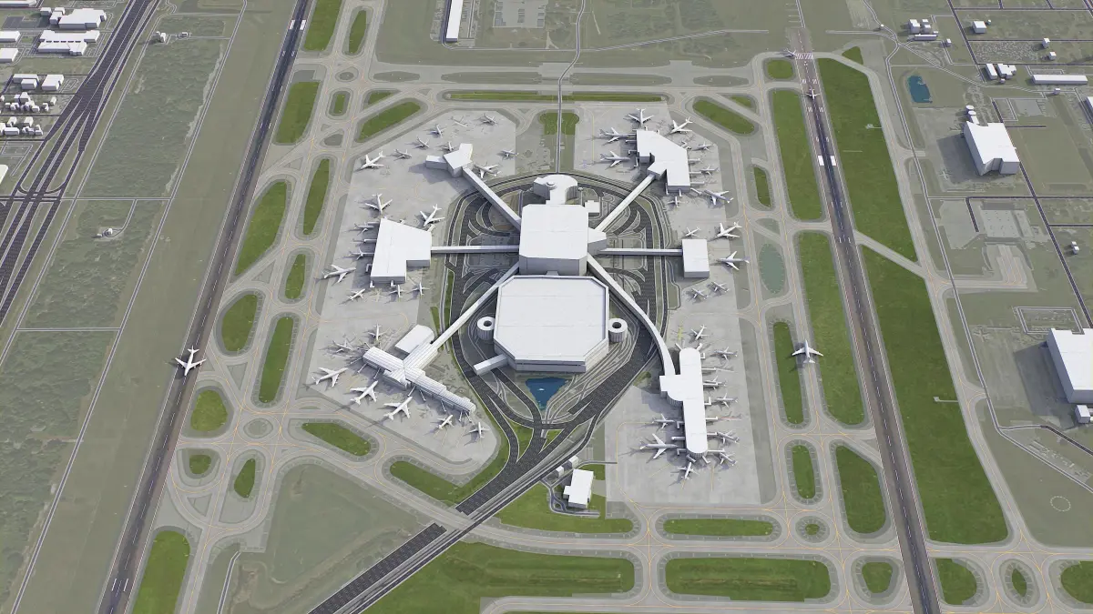 This is exact and accurate to-scale 3D model of Tampa International Airport (TPA) and its surrounding area based on GIS data (June 2022)