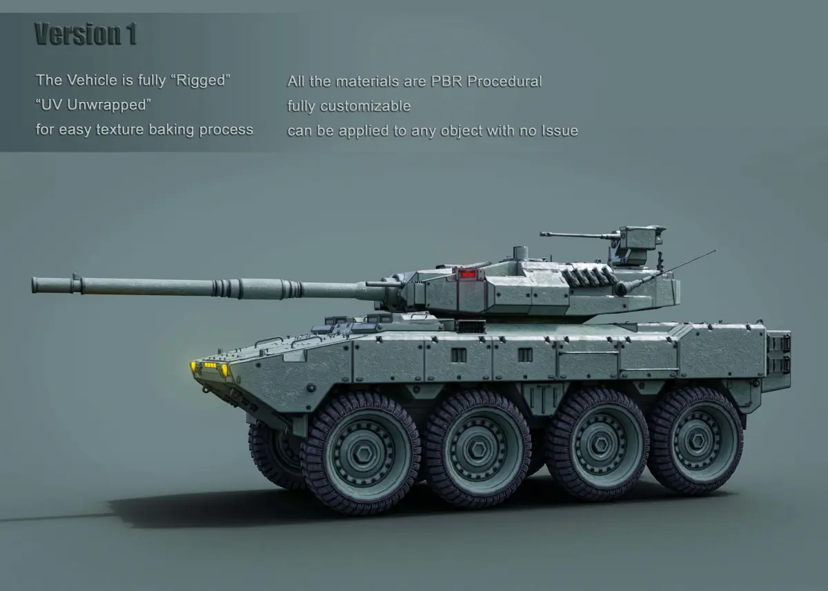 PBR Materials: metalness workflow. Objects are logically named for ease of scene management. All moving parts have correct pivots. Unit system is set to metric (meters). Real-world scale. Model length: 6.98m,2.4m Previews rendered in Blender Cycles 3.3.4, light rig/HDRI is included with the scene file. Game ready model, was not intended for subdivision. Polycount with tracks: