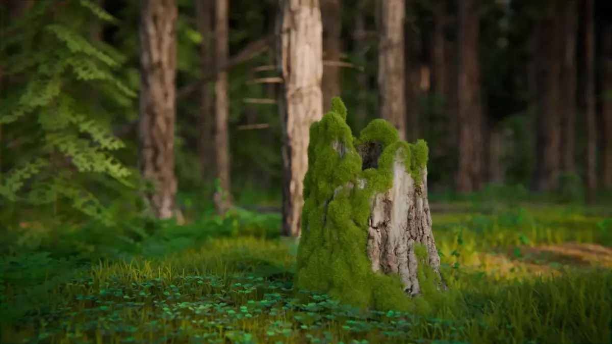 Subdivision Surface(trees, tank, ground, tree stump, plants)