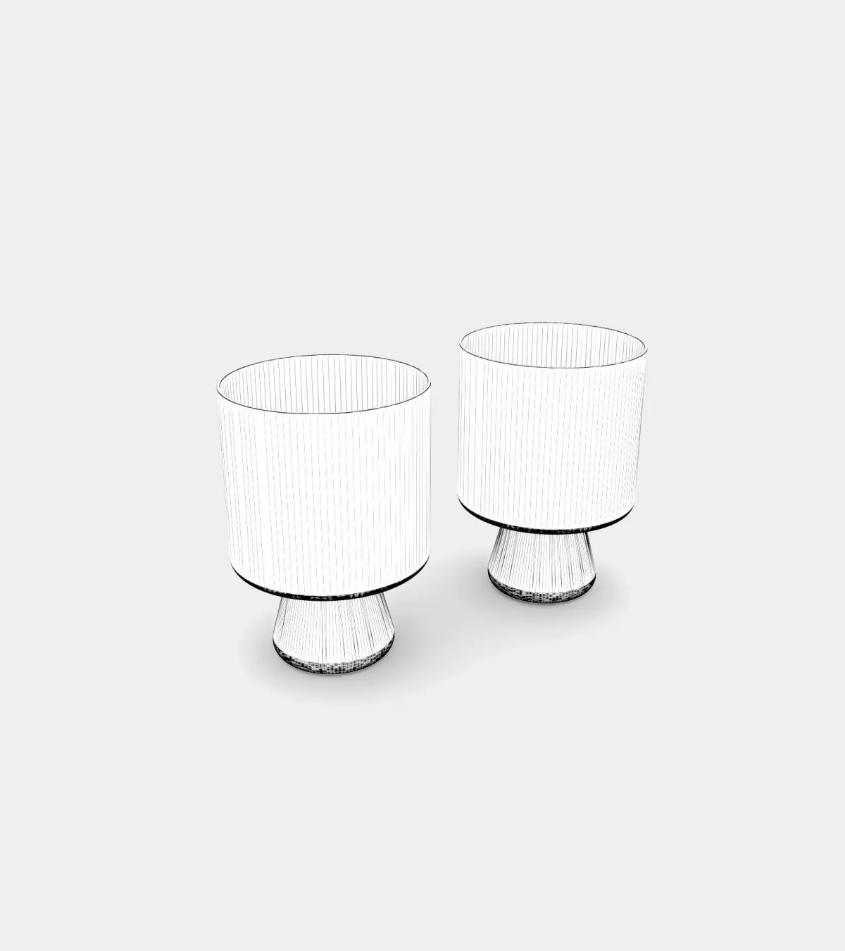Photorealistic 3D model tank low ball glasses black and yellow gray are modeled to resemble those of famous Dixon’s line of contemporary homeware