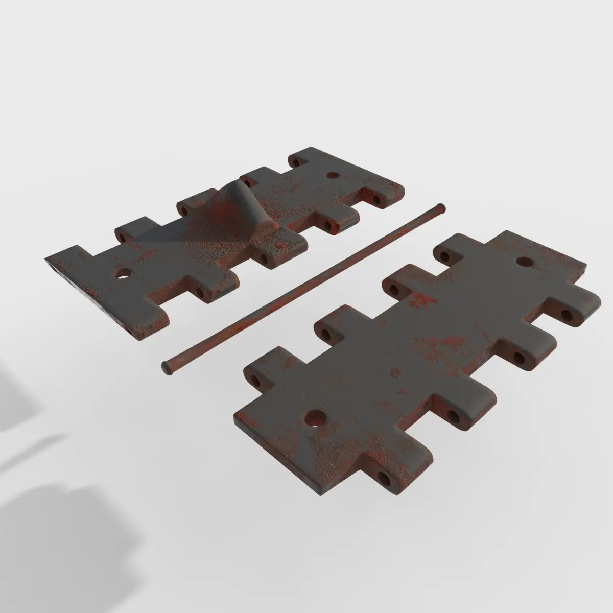 3d detailed model of the T34 tank track. The exact model of the track consists of 3 parts and is made in 3 textures - steel, painted steel, and rusty steel. Can be printed on a 3D printer.The model is made in 4d cinema R25. Converted to 3dmax and blender Easy enough to integrate into games. Includes textures. PBR textures TARGA and JPEG format 4096x4096 Base_color, Mixed_AO, Heigt, Metallic, Roughness, Normal_OpenGL, Emissive.