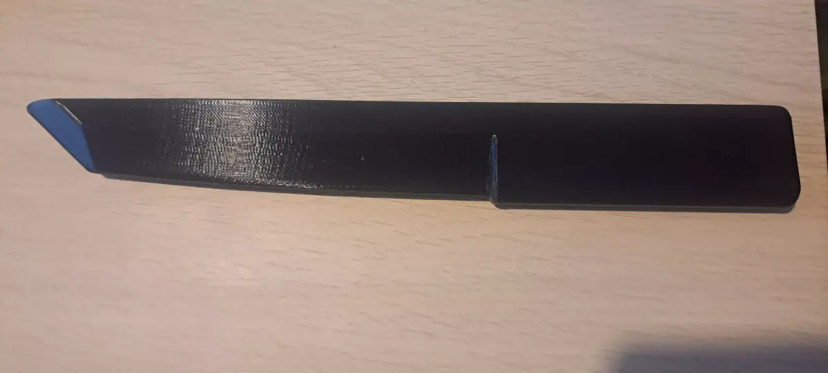 Knife inspired by tanto design. It is great for martial arts trainigs, cosplay or just as a toy. It is about 26,5cm in lenght.Handle is 10cm long.Blade is 16,5cm long.width is 1,5cm.It is already teste in martial arts classes and it worked fine.
