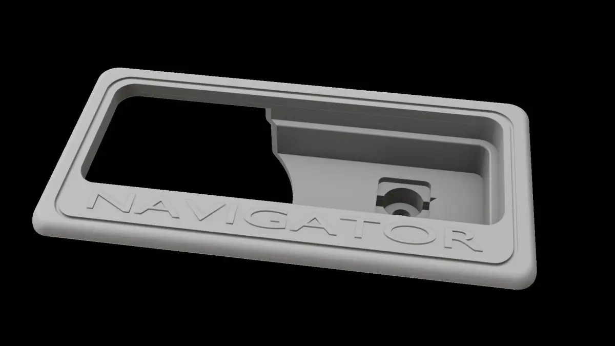 Este modelo 3D representa una pieza del vehículo Lincoln Navigator. El diseño incluye un marco rectangular con la inscripción NAVIGATOR en la parte inferior, y estructuras internas específicas que podrían ser utilizadas para soporte o montaje de otros componentes dentro del vehículo. Este modelo es ideal para proyectos de restauración, personalización, o reparación de vehículos Lincoln Navigator.