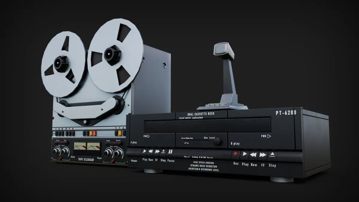 model includes an a tape recorder and a deck recorder with a microphone all with High quality PBR texturesIdeal for video games since its low poly just about 7k vertices and works well in realtime engines tested in evee and unity HDRP can also be used as a scene filler and background object for vfx shots and filmss clean quad topologyuv mapped with 2k textures