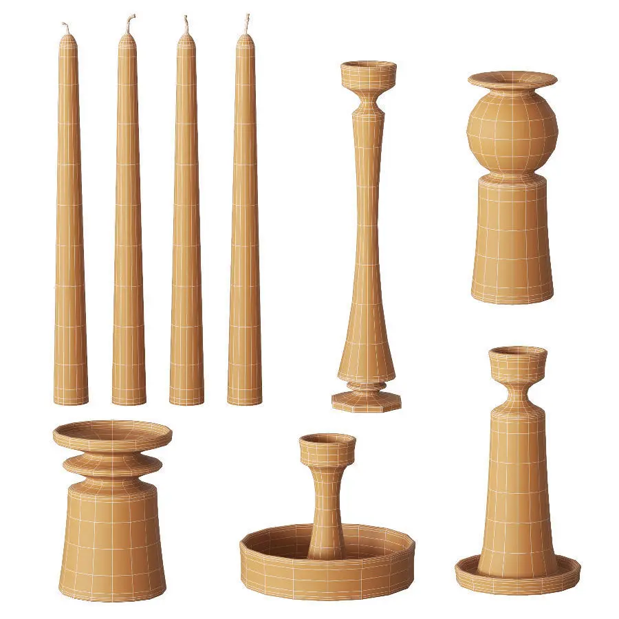 A small collection of taper candle holder. This model has fine detail and is suitable for close-up views. TurboSmooth can be used as needed.You can find more views on my instagram (link in the profile).