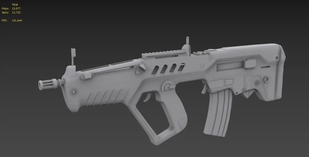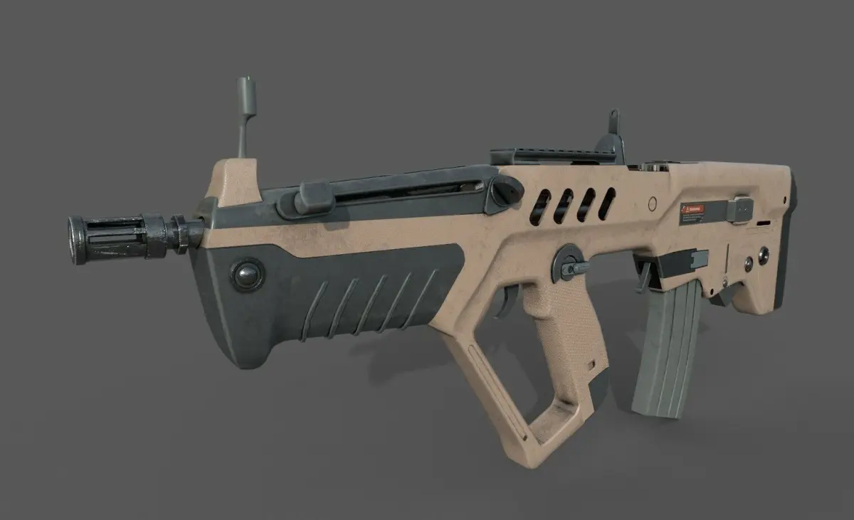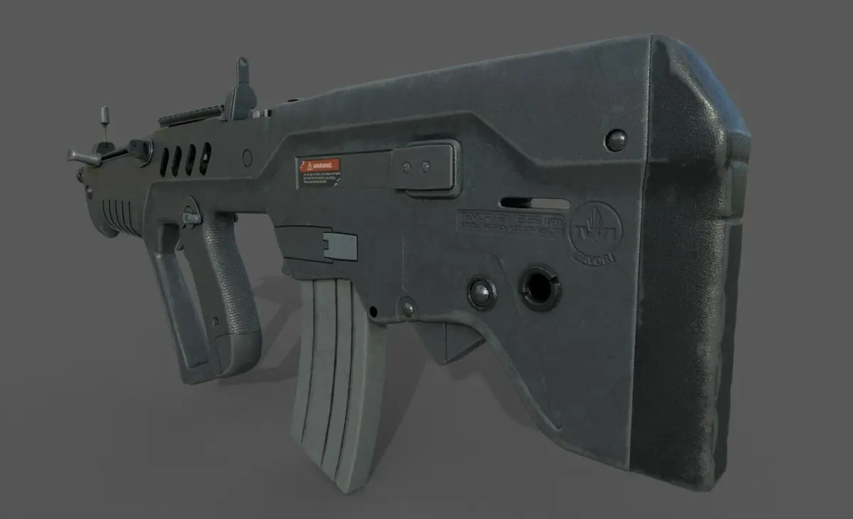 Tar-21 bullpup weapon, for more info about this rifle look this Wiki article: https://es.wikipedia.org/wiki/IMI_Tavor