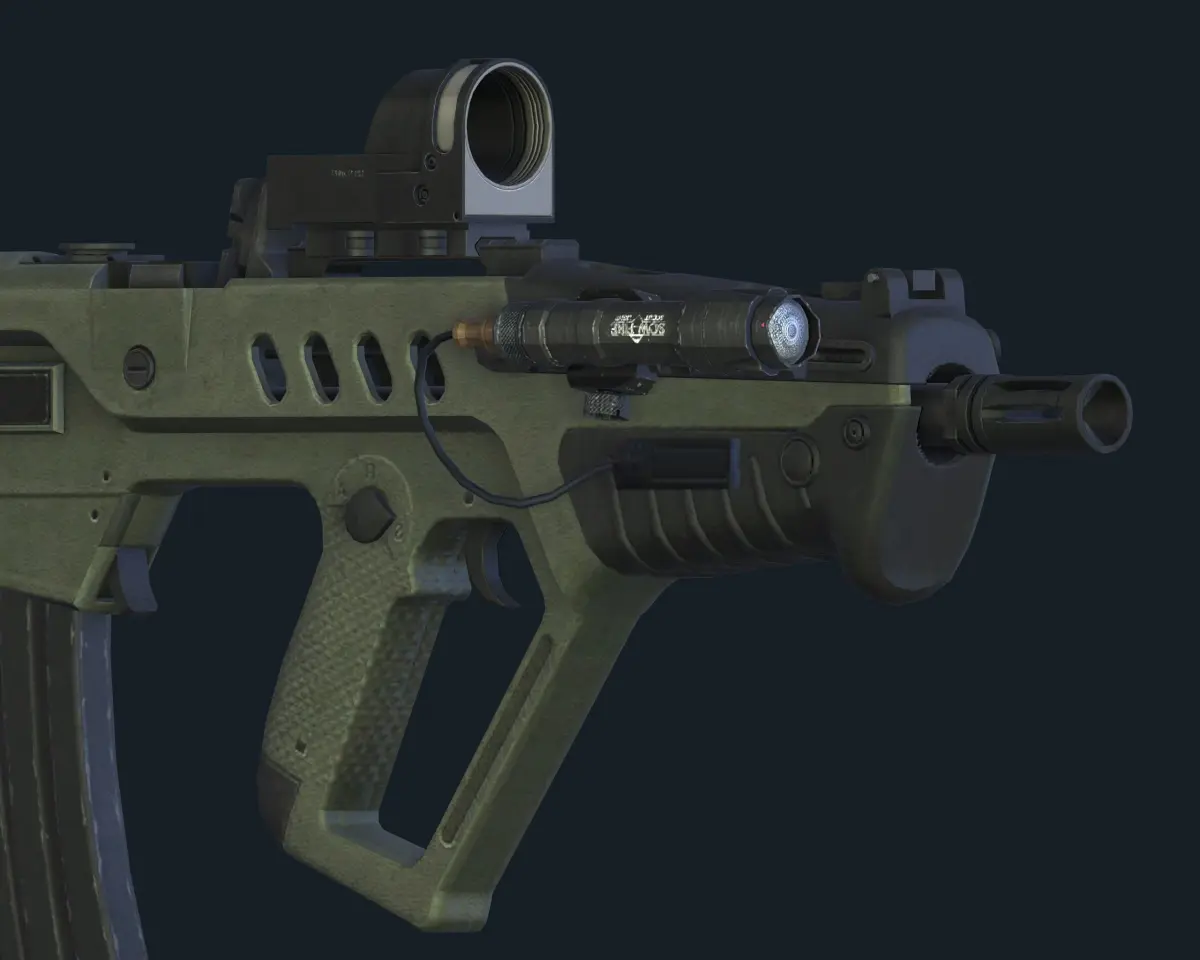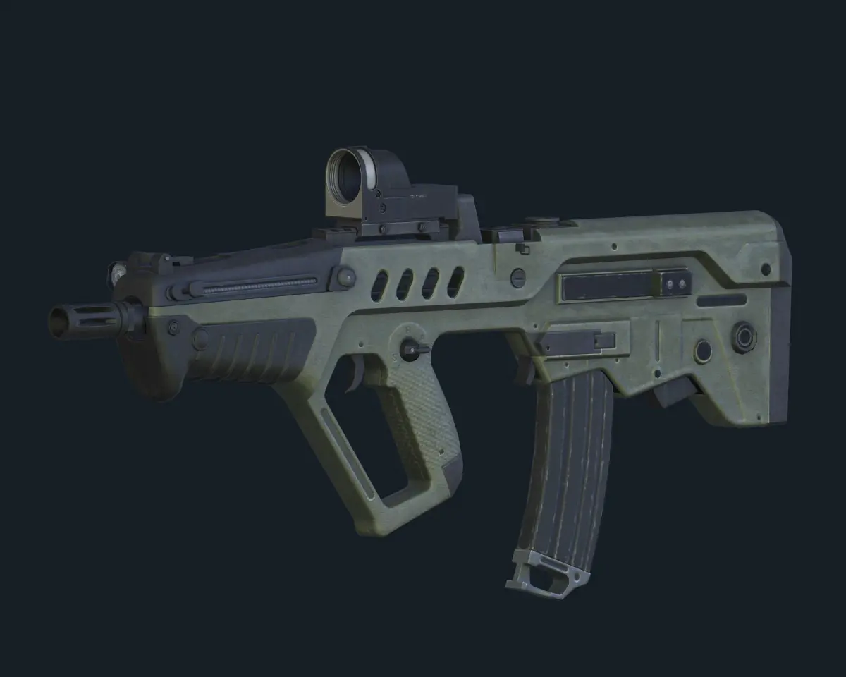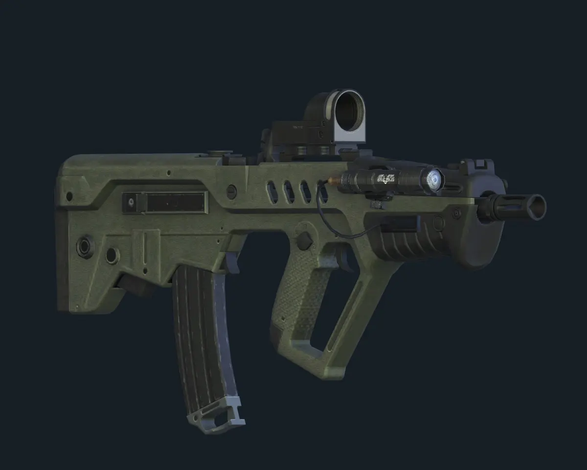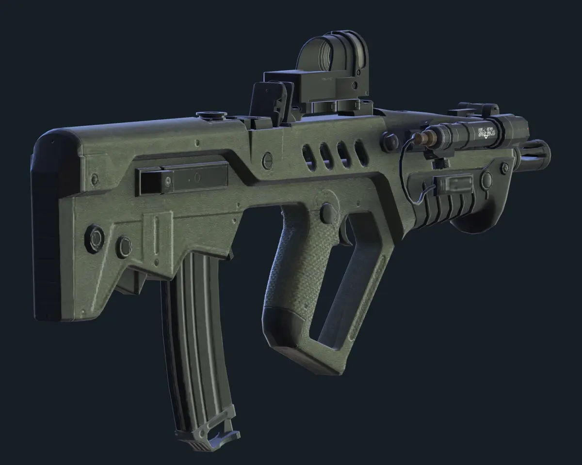 Israeli Bullpup Assault Rifle Tar-21.The 3D model was created on real base. It's created accurately, in real units of measurement, qualitatively and maximally close to the origin.