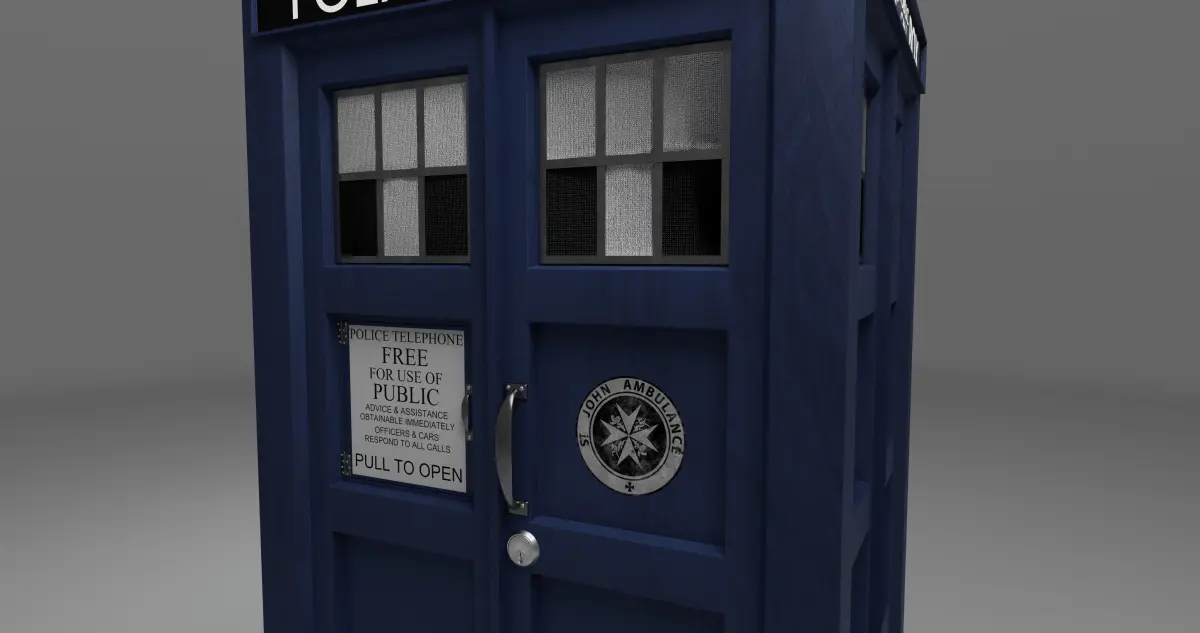 This is my rendition of the TARDIS from Doctor Who. This is only the exterior of the TARDIS, and doesn't include the interior. Most materials here are procedural, although the St. John sticker uses a texture, and isn't procedural. The FBX, OBJ, and STL files do not have materials/textures, only the BLEND file does.