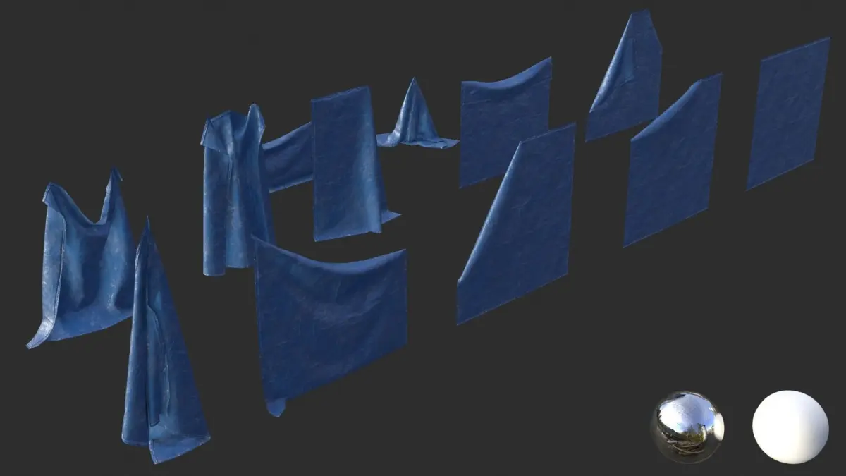 This asset includes 12 tarp dropped configurations. All tarps share the same material and are 2 m square dimensions. The material includes 4 variants of Base Color with Blue, Green, Black or Yellow colors.