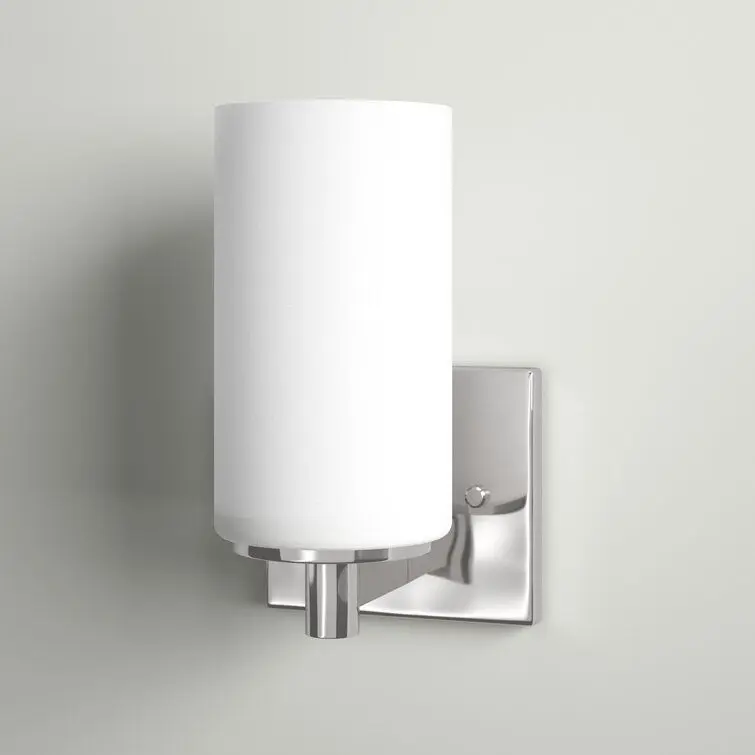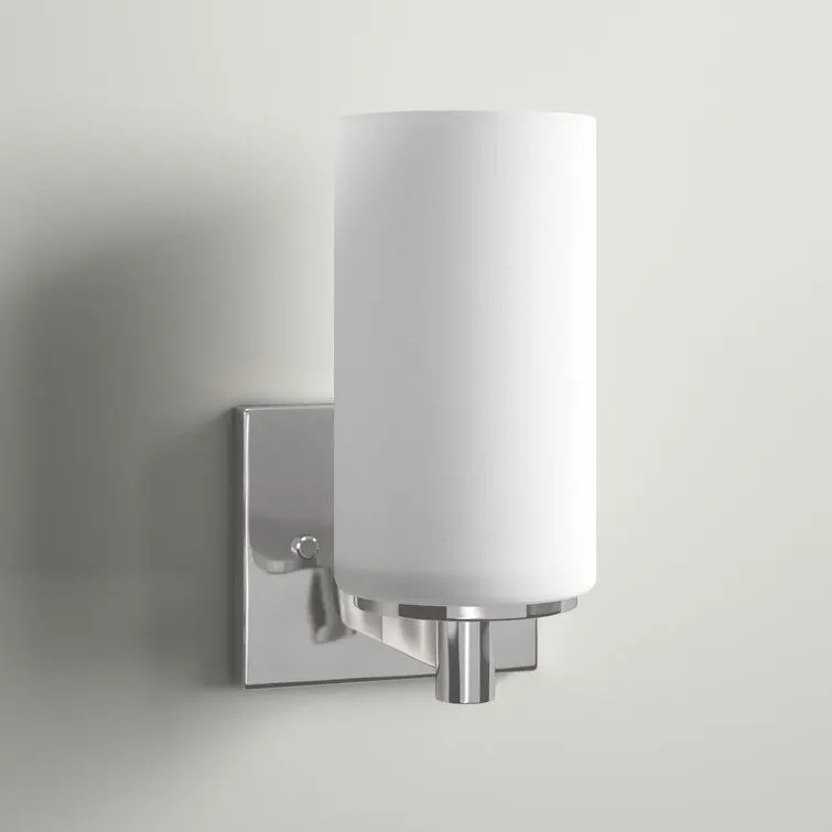 - This 1-light bath sconce fills your space with a subtle glow when you need just a little extra illumination and modern farmhouse charm. Made from steel with a metallic finish, it includes a square backplate with a matching arm and holder.