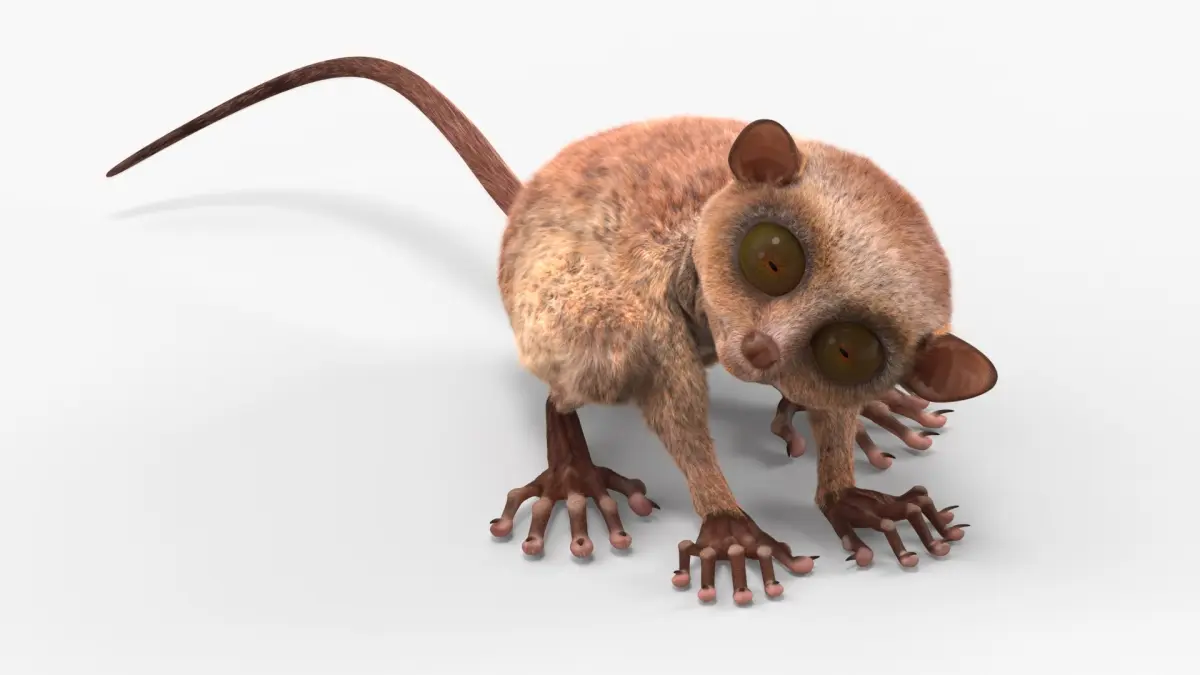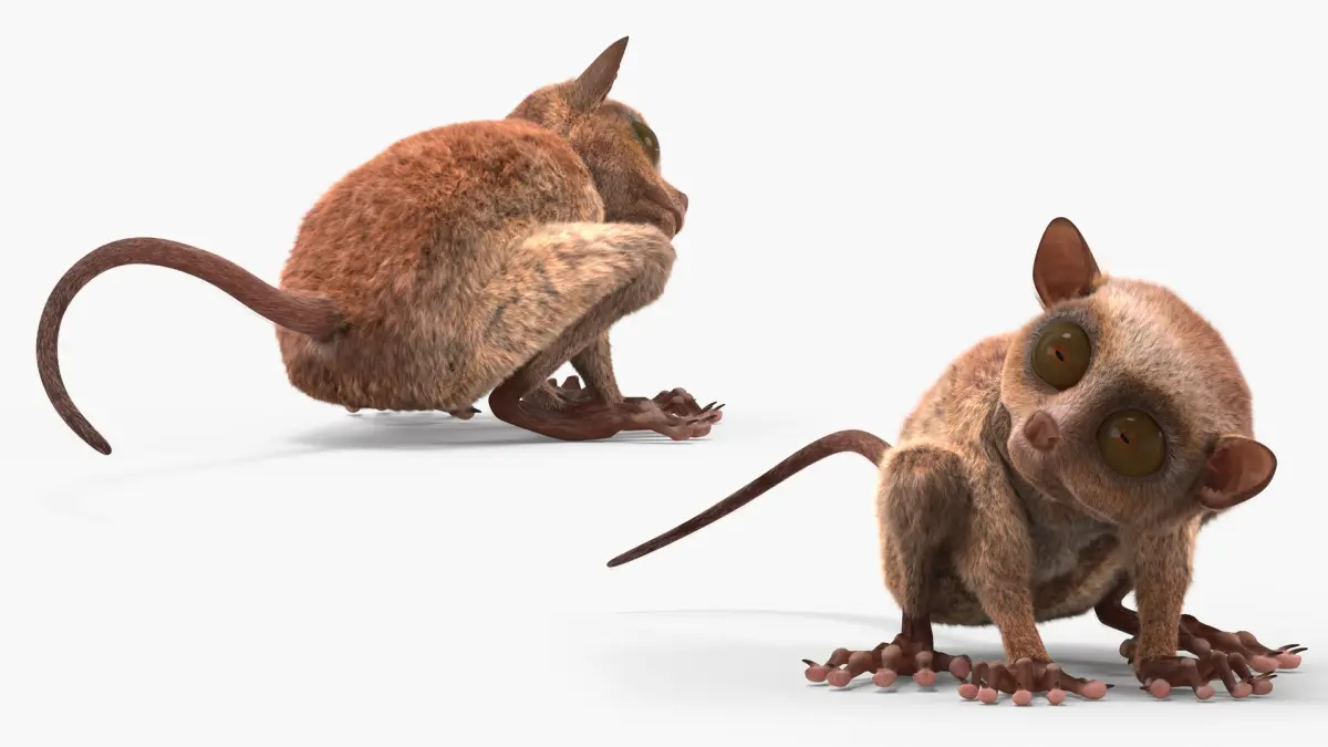 Tarsier Monkey in Tilted Head Pose Fur for Cinema 4D is a three-dimensional model of small nocturnal primate known for its large eyes and agile movements.