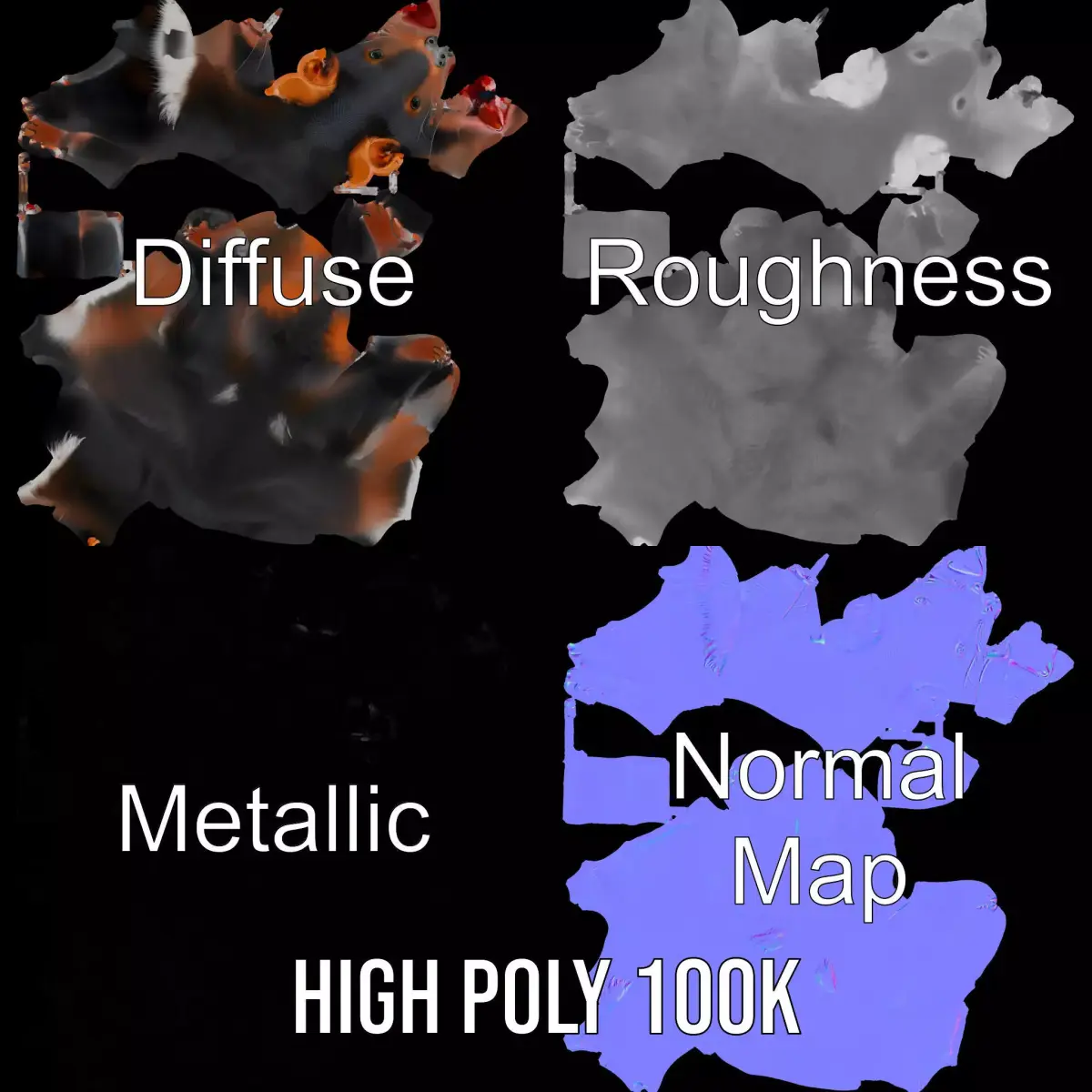 The Tasmanian Devil Realistic model pack offers a highly detailed 3D representation of the iconic marsupial, ideal for wildlife simulations, educational content, and environmental design. Each model has 3 levels of detail: low-poly (1000 triangles for mobile), middle-poly (10,000 triangles for environment), and high-poly (100,000 triangles), which allows for use in production rendering (such as 3ds Max, Maya, Cinema4D, Blender, Vray/Corona/Cycles and all others), game engines (Unity and Unreal compatible), and interactive presentations, providing a choice of detail based on the LOD System principle. The model's textures are PBR, Diffuse, NormalMap, and reflection/roughness/metallic, suitable for any modern rendering engine. All models are accurately unwrapped and have no overlapping UV. All textures are 4096*4096 in size. Perfect for animators, game developers, and educators seeking lifelike animal models to enhance visual storytelling or simulations. Please like and leave a comment if you enjoyed this model!