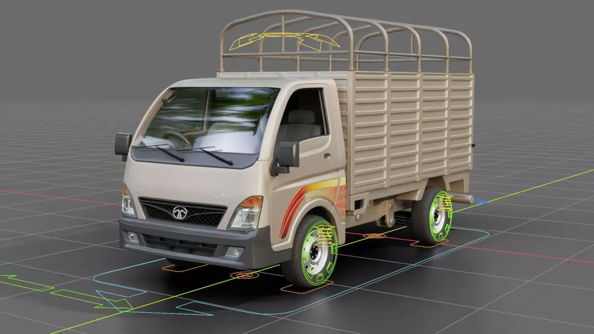3D model of the 2015 Tata Super Ace EX Cargo Truck. Created in Blender and already rigged using the Rigacar add-on. The mesh of the model in the Blender file format is mainly quads.